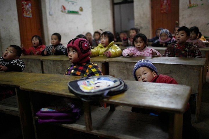 FacebookTwitter 24 παιδιά μεταξύ δύο και πέντε χρονών σε σχολείο του χωριού Ρουζχού. Τα περισσότερα παιδιά ζουν με τη γιαγιά και τον παππού τους, καθώς οι γονείς τους εργάζονται στις μεγαλουπόλεις για πενιχρούς μισθούς στο Πεκίνο ή στην Χάνγκτσου.