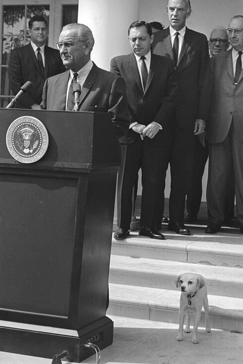 Ο Lyndon B. Johnson απευθύνεται σε αξιωματούχους κατά την υπογραφή του Νόμου "Food Stamp Bill" το 1964, ενώ η νέα προσθήκη της οικογενείας, Yuki, έρχεται να δει τι συμβαίνει. Την Yuki είχε βρει όταν ήταν κουτάβι η νεότερη κορη του Προέδρου και την ονόμασε με την ιαπωνική λέξη για το χιόνι.