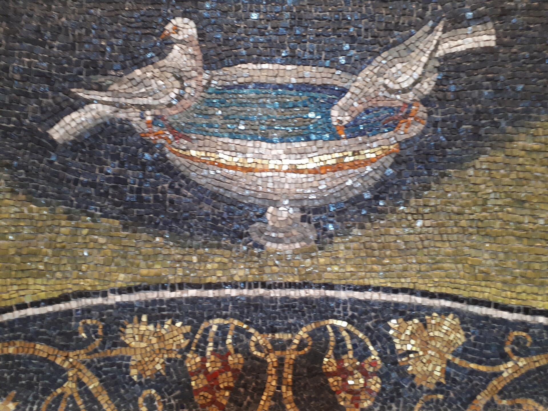Ειδικά για τα αντίγραφα των ψηφιδωτών της Ραβέννας επισήμανε ότι η τέχνη είναι εξαιρετική. «Από τη δεκαετία του '50, με πρωτοβουλία του καθηγητή Τζουζέπε Μποβίνι, καλλιτέχνες από την Ακαδημία Καλών Τεχνών της Ραβέννας δημιούργησαν αντίγραφα από αποσπάσματα σκηνών από τα ψηφιδωτά, σε μια γενικότερη αντίληψη που επικρατούσε τον 19ο αιώνα για αντιγραφές τοιχογραφιών ή ψηφιδωτών για ιστορικούς λόγους» ανέφερε. Διευκρίνισε, πάντως, ότι στην Ιταλία επικρατεί μια εντελώς διαφορετική άποψη από ό,τι στην Ελλάδα και έτσι εκεί τα ψηφιδωτά συμπληρώνονται.