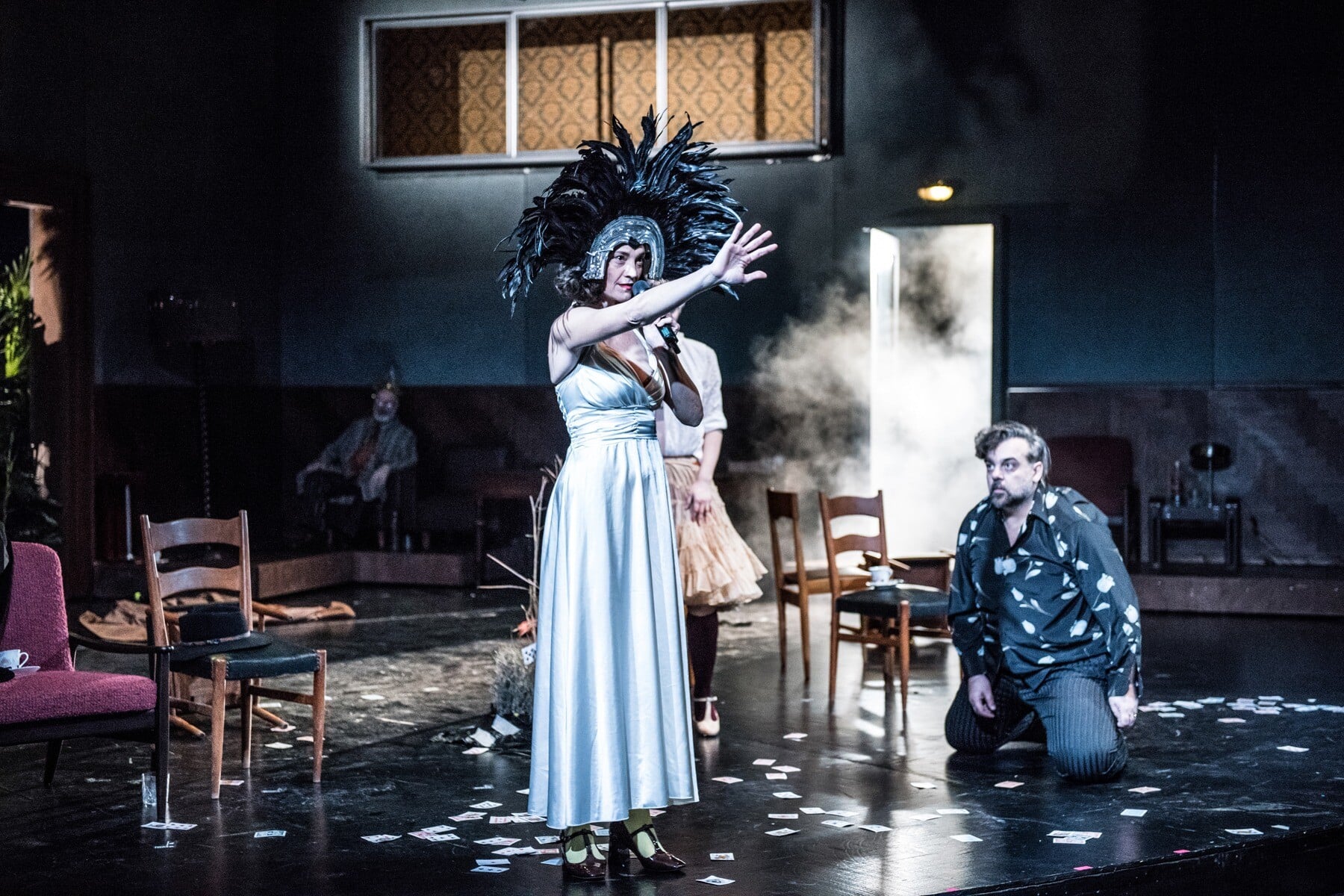 Εγκλωβισμένοι όλοι μαζί, ο καθένας με το δικό του gestus, διασκορπισμένοι στα έπιπλα και στις γωνίες, οι ήρωες υφαίνουν από κοινού έναν ιστό παραίτησης, νεύρωσης και ανίας.