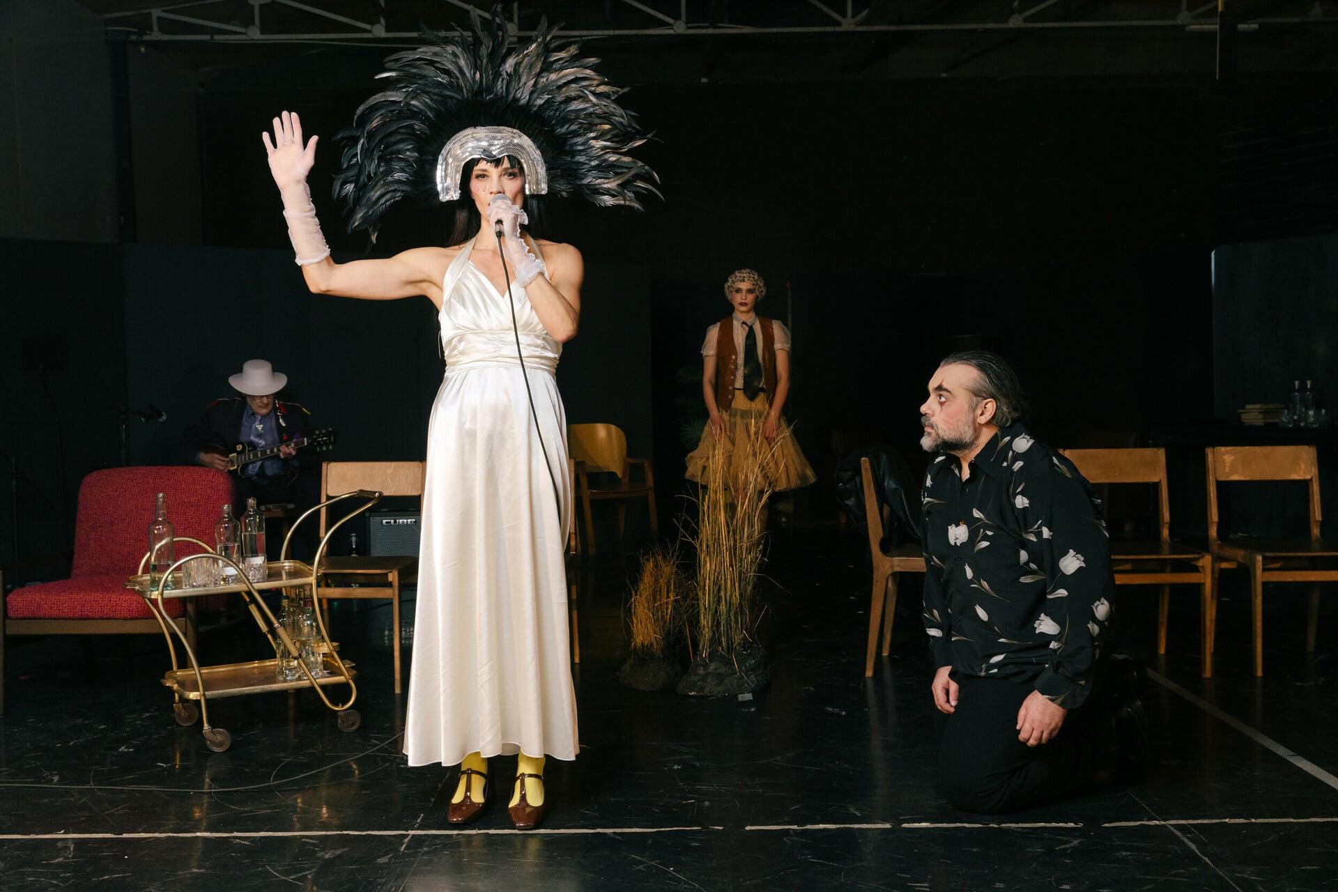 Κάπου μέσα σ’ αυτόν τον χώρο υπάρχει και ένα άδειο, εγκαταλελειμμένο γκαράζ. Εκεί κατοικοεδρεύει ο Μουσικός, ο Blaine Reininger των Tuxedomoon, που ερμηνεύει ζωντανά τη μουσική και τα τραγούδια της παράστασης, που από μακριά μοιάζει με ξεπεσμένο ροκά ή άστεγο busker, αλλά σιγά σιγά αποκαλύπτεται ως ένας ιδιότυπος ψυχοθεραπευτής. Ένας πραγματικός γιατρός που (σε αντίθεση με τον “γιατρό” Λβοφ που δεν μπορεί με τη δογματική του ιατρική να βοηθήσει κανέναν) με τη μουσική και τα τραγούδια του και τα ξερά, δηκτικά του αστεία “θεραπεύει” ή ανακουφίζει τα συμπτώματα των ψυχικών ασθενειών των προσώπων. Εκεί βρίσκουν καταφύγιο οι κατατρεγμένοι του ιδιότυπου αυτού μετα-γκορκικού βυθού».