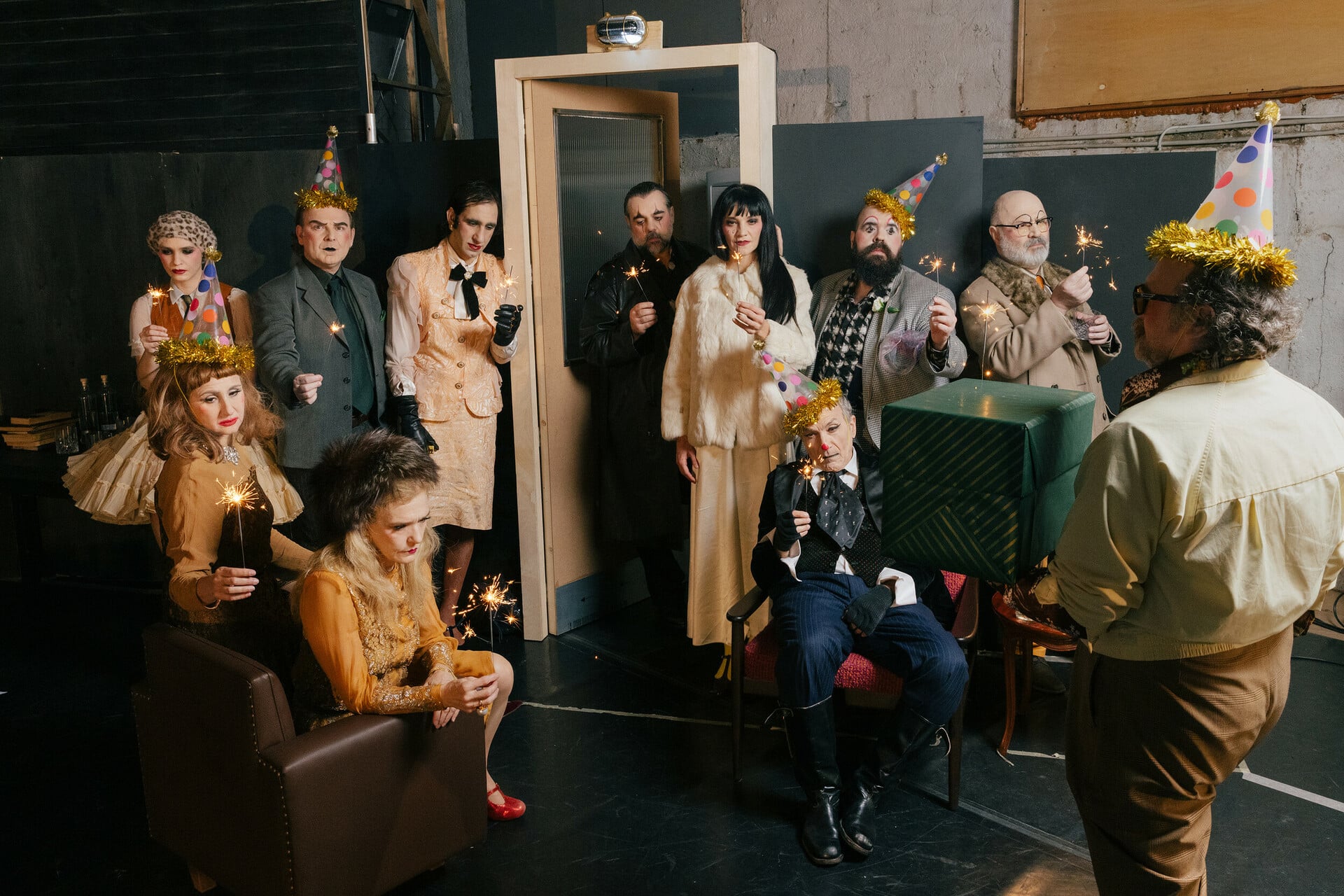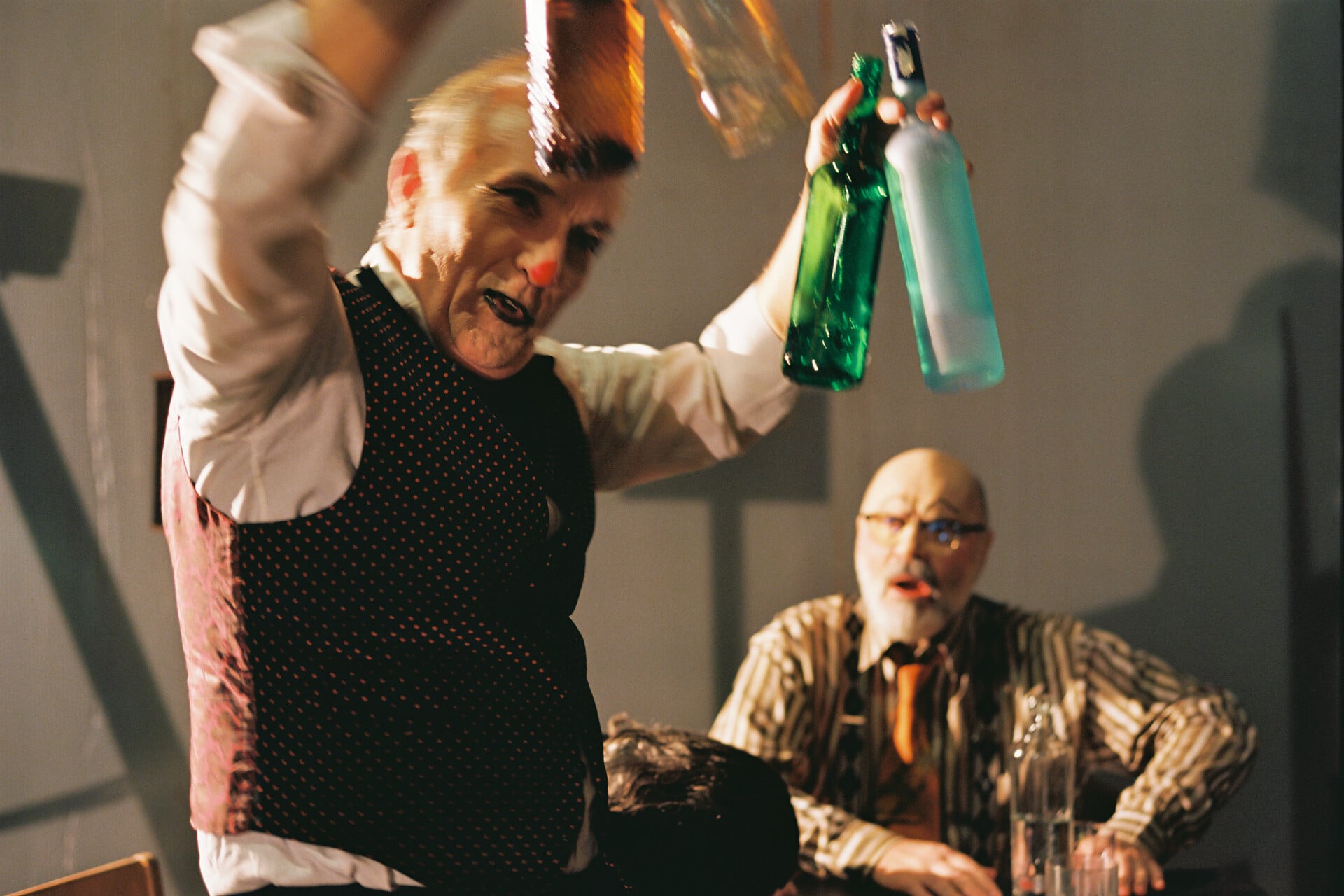 Όλα τα πρόσωπα, Αργύρης Ξάφης, Γιάννης Νταλιάνης, Μαρία Σκουλά, Νίκος Χατζόπουλος, Θανάσης Δόβρης, Αλεξάνδρα Καζάζου, Κατερίνα Λυπηρίδου, Πηνελόπη Τσιλίκα, Χάρης Φραγκούλης, Νικόλας Χανακούλας, Ευάγγελος Βογιατζής, είναι σχεδόν πάντα παρόντα επί σκηνής, με διάφορες δράσεις, ασήμαντες ή πιο σημαντικές, έμμεσα σχετικές ή φαινομενικά άσχετες με το κύριο σκηνικό γεγονός, καταλαμβάνοντας μέρη του χώρου όπου θα εμφανιστούν κι αργότερα, σαν να καταργείται ο χρόνος, σαν παρελθόν, παρόν και μέλλον να είναι παρόντα ταυτόχρονα, σαν το ένα να μπαίνει μέσα στο άλλο. Όπως και οι χώροι, μπαίνουν κι αυτοί ο ένας μέσα στον άλλο, σαν οι χώροι να είναι στην πραγματικότητα ένας ενιαίος, ένα σύμπαν. Αλλά το ίδιο και οι συνειδήσεις: σαν να μπλέκονται, και να ζουν και να συλλαμβάνουν πολλές παράλληλες πραγματικότητες.