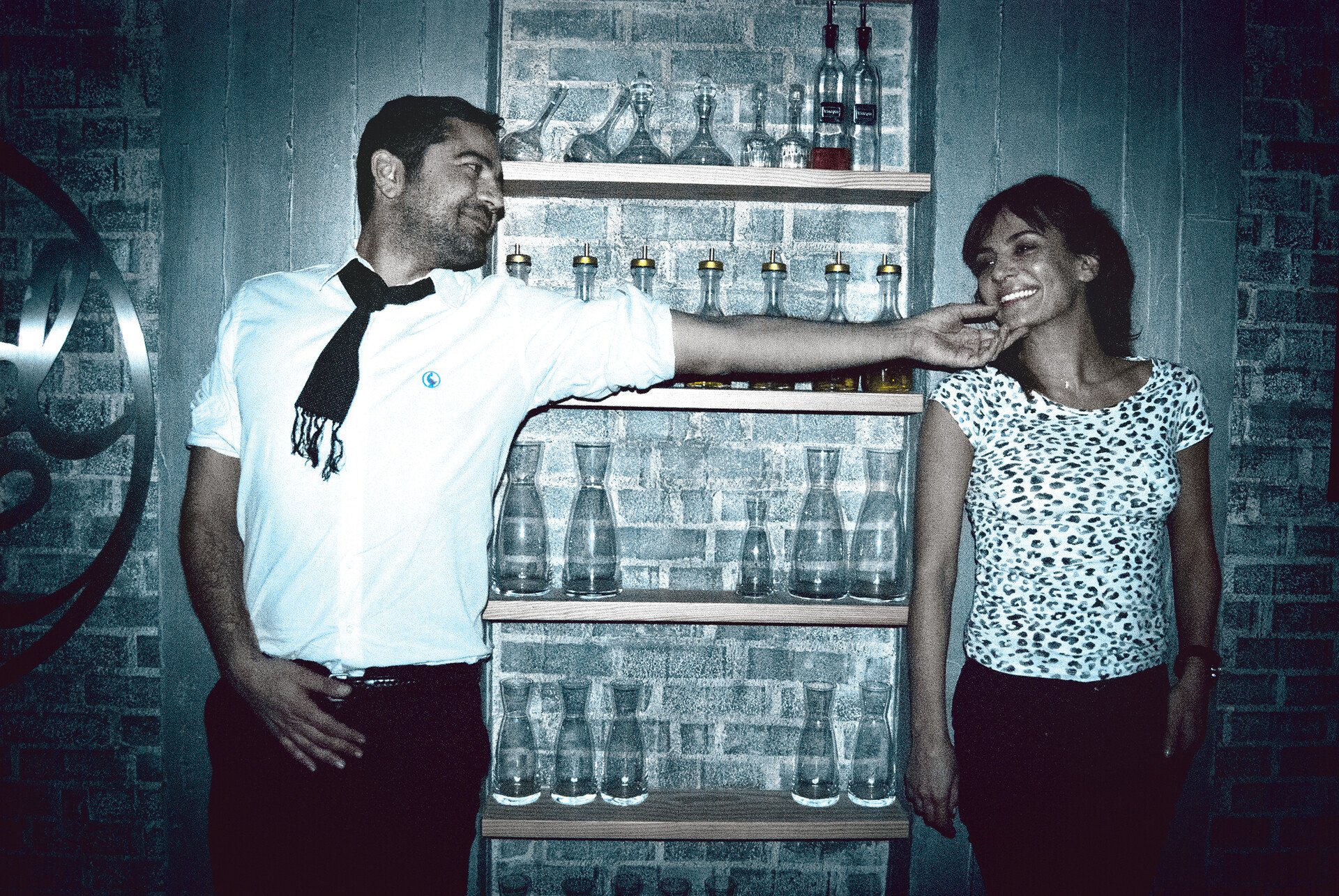 Είμαστε στο Salon de Bricolage, αυτό το πρώτο members μαγαζί της πόλης, εκεί που κάποτε ήταν το Pizza Pomodoro (εκείνη η αλήστου μνήμης μετα-πιτσαρία της Βίσση, που ήταν κάτι σαν το Hard Rock meets την πλακιώτικη μπουάτ). Πέρα από το τυπικό μπαρ της υπόθεσης, στο βάθος, πίσω από μια κουρτίνα, βρίσκεται ένα μοναστηριακό τραπέζι όπου διάφοροι celebrities (ή μη) τρώνει φιλέτα μινιόν μαζί, σχεδόν αγκαζέ. Και μετά η Δήμητρα βάζει ένα κόκκινο κατσαρολάκι στο κεφάλι της και υποδύεται τον μεταμοντέρνο τσολιά, ενώ μου διηγείται ιστορίες από το Μπαλί και από το Ρίο ντε Τζανέιρο.