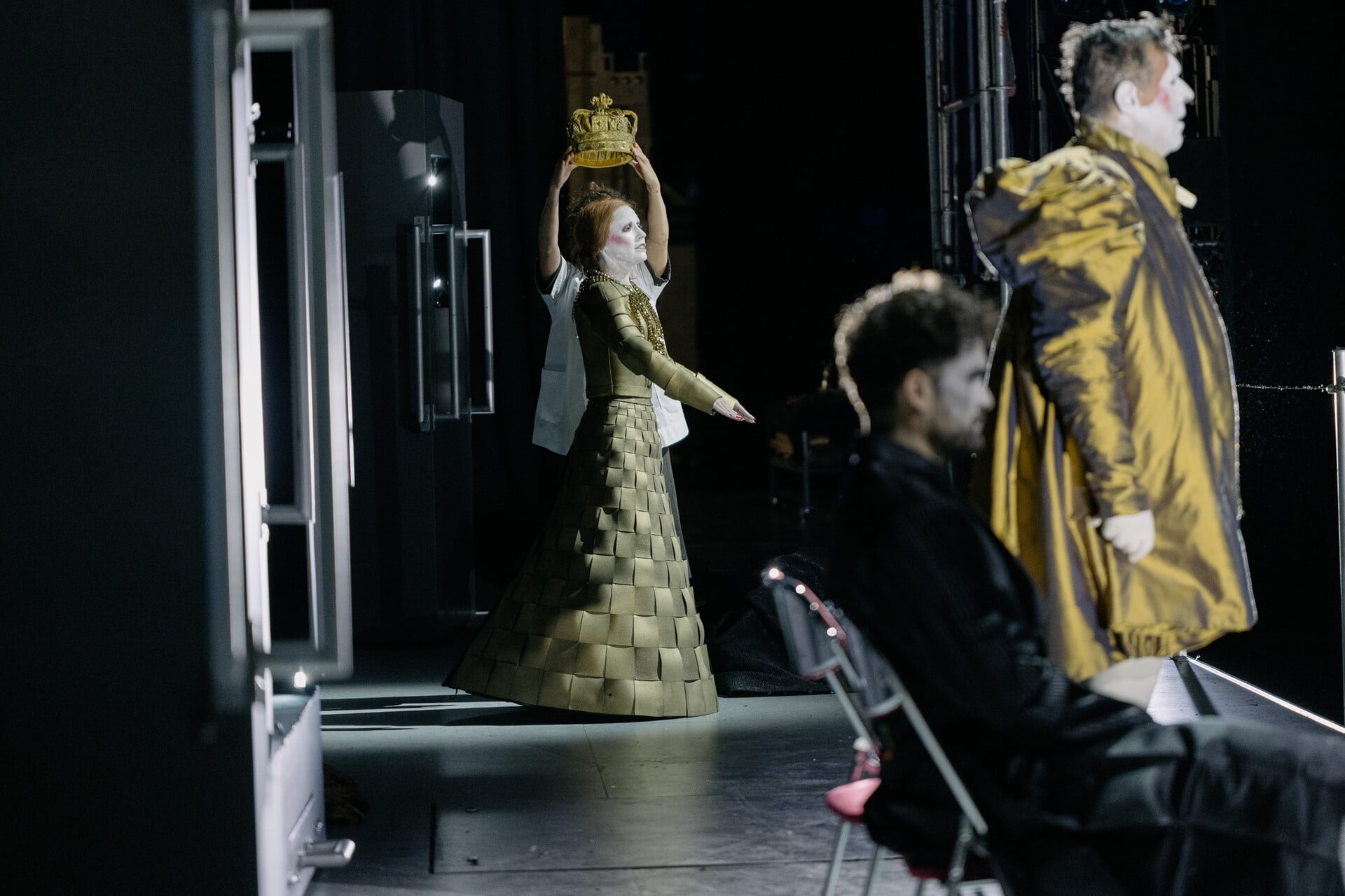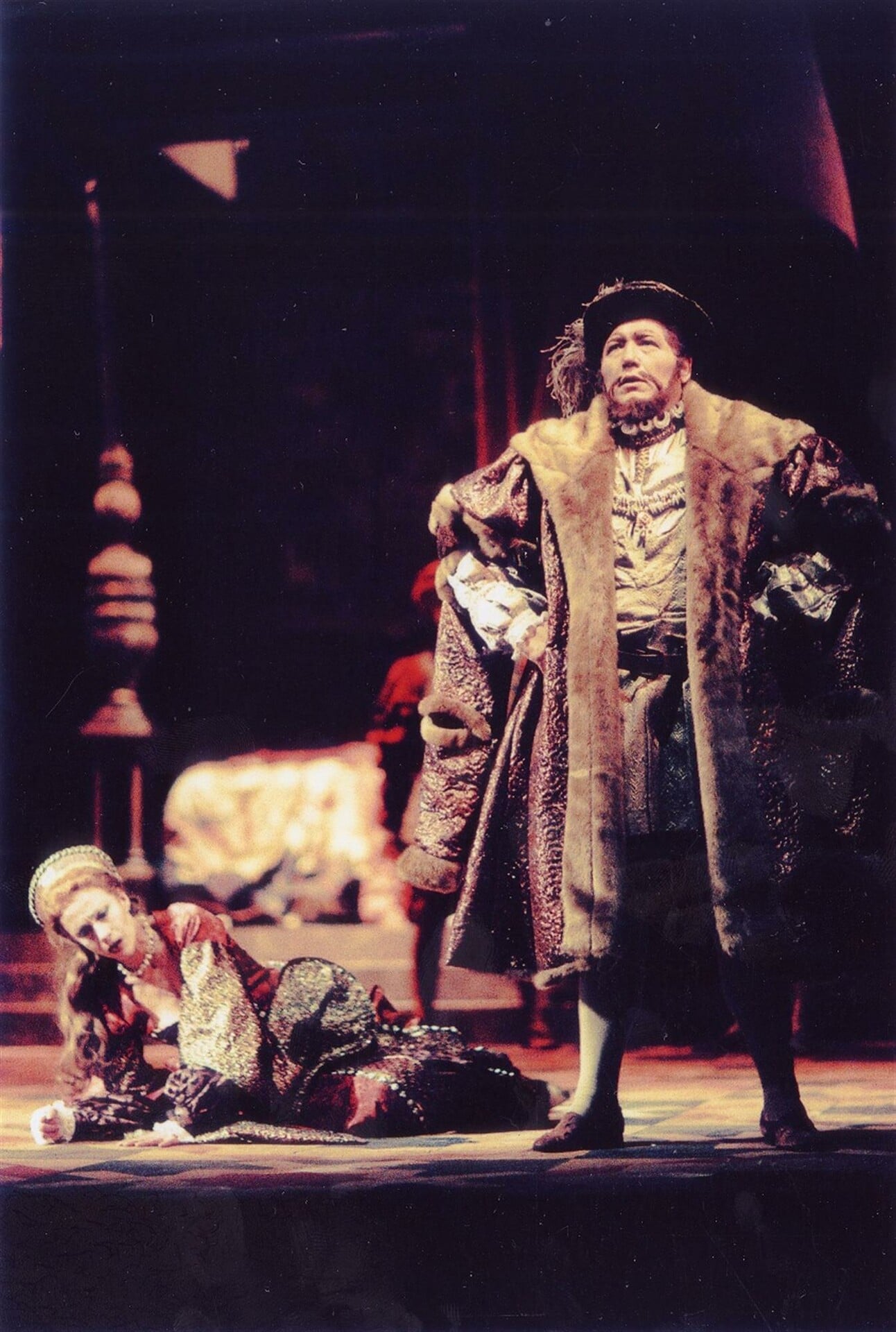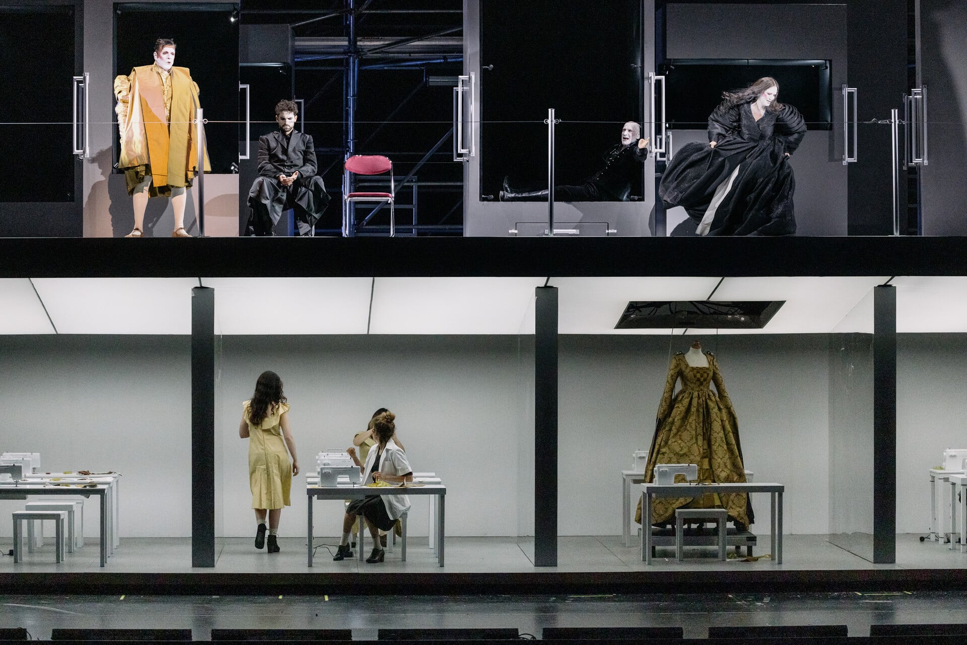 Από αυτή την απόπειρα επανεξέτασης της παραδοσιακής παρουσίασης μιας όπερας με έντονο το μελοδραματικό στοιχείο απουσιάζει ουσιαστικά το πολιτικό στοιχείο. Πρόκειται για μια νέα προσέγγιση με σύγχρονους εικαστικούς και θεατρικούς όρους: τα κοστούμια του Νικόλα Γεωργιάδη αποδίδουν πιστά την αγγλική Αναγέννηση και δεν χρησιμοποιούνται με την πρόθεση της ρεαλιστικής απεικόνισης της εποχής και των χαρακτήρων. Άλλωστε η αγγλική Αυλή ανέκαθεν διέθετε θεατρικότητα στους ενδυματολογικούς της κανόνες στην πραγματική ζωή. Δραματουργικό ενδιαφέρον όμως θα έχει και το σκηνικό του εξαιρετικού Βρετανού σκηνογράφου Λέσλι Τράβερς στη δεύτερη συνεργασία του με τον Γλυνάτση μετά το ιδιαίτερα πετυχημένο «Πύργο του Κυανοπώγωνα» του Μπέλα Μπάρτοκ.
