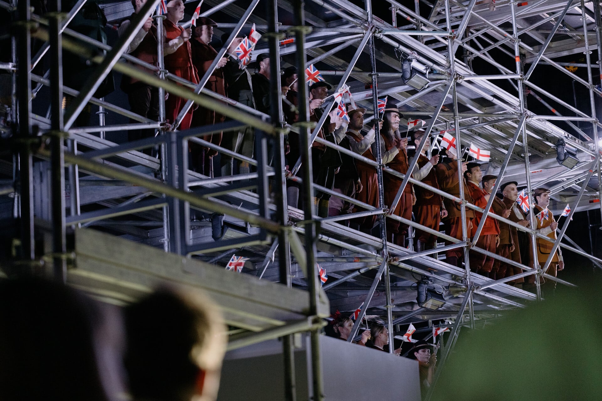 Ο σκηνοθέτης σχολιάζει: «Η αποδόμηση της ιστορικής πιστότητας συντελείται και μέσω του ήχου. Εκεί όπου το μπελ κάντο προτάσσει τον όμορφο ήχο ως απόλυτο στόχο, η παράσταση χρησιμοποιεί τον ήχο ως ιστορικό αρχείο που παρεμβαίνει και διαταράσσει την αισθητική επιτακτικότητα του είδους. Ηλεκτρονικές παρεμβολές βασισμένες σε ιστορικό αρχειακό υλικό από σημαντικές συγκρούσεις από την αγγλική ιστορία του 20ού αιώνα εισβάλλουν στη λυρική ροή χωρίς την πρόθεση να την εκσυγχρονίσουν, μόνο να τη διακόψουν. Ο αρχειακός ήχος ούτε εξηγεί ούτε αφηγείται: συγκρούεται. Φέρνει πίσω τη βία που η όπερα έχει αποκρύψει ή αισθητικοποιήσει. Στην εποχή μας ο ηλεκτρονικός ήχος μπορεί να προσφέρει μια πολιτική και αισθητική “αναπαλαίωση” της όπερας μέσω καινοτόμων ηχητικών δραματουργιών».