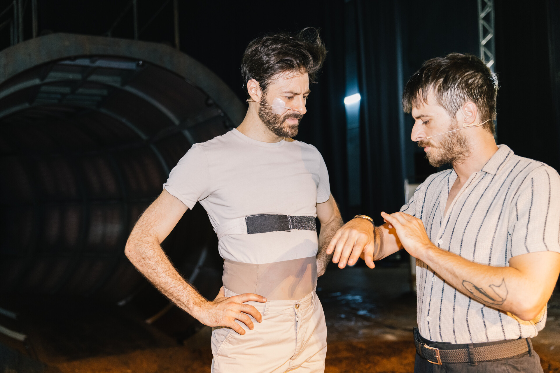 Βρισκόμαστε με τη Ζωή Παρασίδη και τον Πάρι Ταβιτιάν στα παρασκήνια του χώρου Η της Πειραιώς 260, λίγο πριν ρίξει αυλαία η καλύτερη παράσταση που είδαμε το φετινό καλοκαίρι, για να καταγράψουμε τη γιορτινή ατμόσφαιρα αλλά και τη συγκίνηση που επικρατεί.
