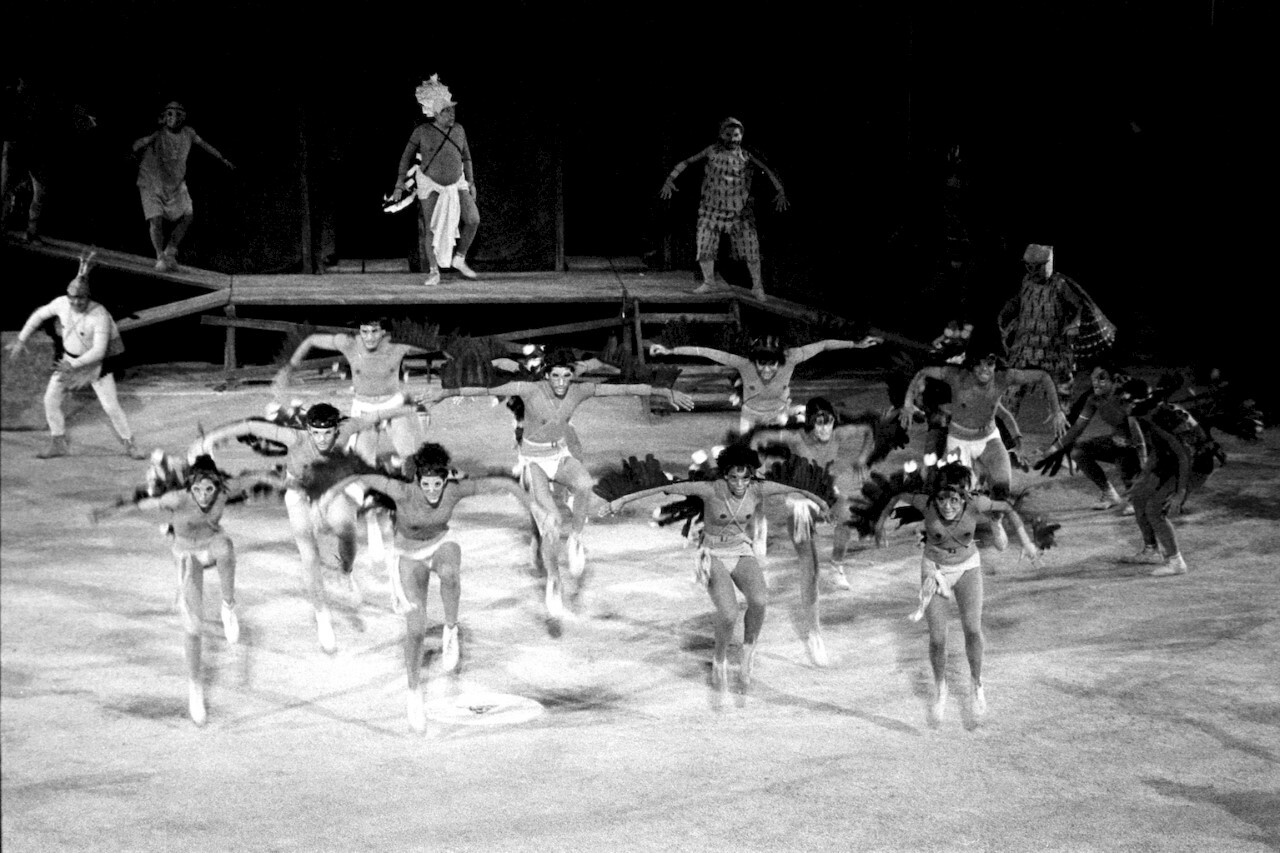 Έπειτα, η μοναδική μαστοριά του μπάρμπα-Γιάννη του Στεφάνου να στήνει τα σκηνικά και να τα στριμώχνει στα φορτηγά. Η ζωγραφική του Μπάμπη Χρηστίδη, με το ίδιο πάντα σκουπάκι, στο τελείωμα της βαφής των σκηνικών.