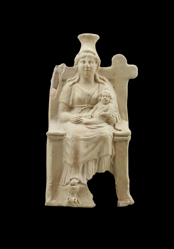 Κνωσός.Πήλινο ειδώλιο ένθρονης βρεφοκρατούσας Ίσιδος 31 π.Χ. – 324 μ.Χ. Από Ρωμαϊκό Ιερό. © ΥΠΠΟΑ/ Εφορεία Αρχαιοτήτων Ηρακλείου