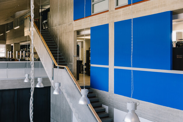 Μέσα στους χώρους της Ανωτάτης Σχολής Καλών Τεχνών, αριστερά μας, βρίσκεται η βιβλιοθήκη της, το μόνο κτίριο που δημιουργήθηκε εκ του μηδενός σε αντίθεση με τα υπόλοιπα που υπήρξαν προϋπάρχοντες βιομηχανικοί χώροι.