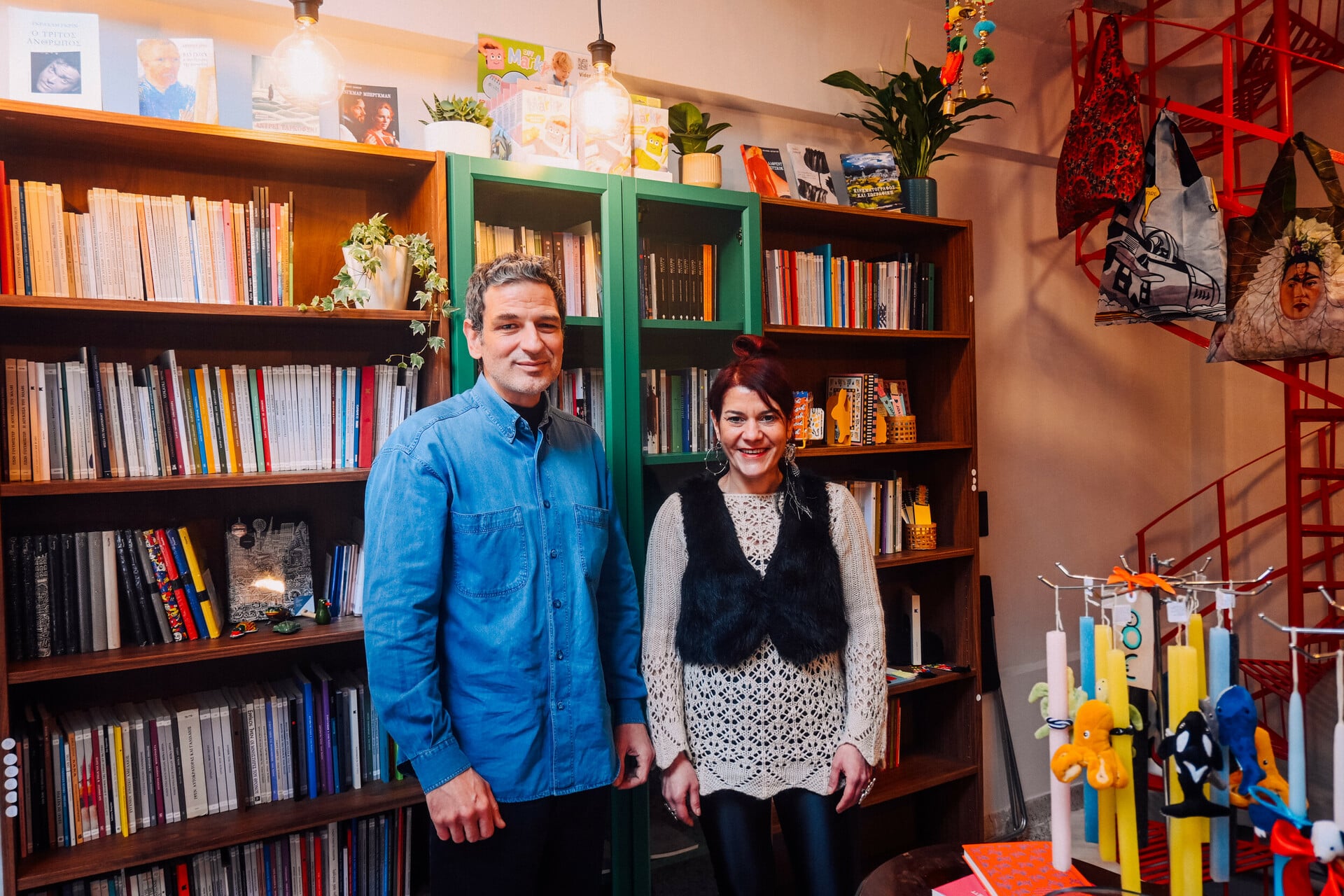 Ερωτευμένοι κυριολεκτικά με τις λέξεις και τα νοήματα του θεάτρου και της τέχνης, οι δυο ιδιοκτήτες εδώ έχουν ενώσει τις μεγάλες τους αγάπες για την ανάγνωση και το θέατρο. «Ερωτευόμαστε τις λέξεις. Ερωτευόμαστε τους χαρακτήρες που τόλμησαν, που φοβήθηκαν, που έμειναν, που έφυγαν. Ερωτευόμαστε τις ιστορίες που συνεχίζουν να ζουν κάθε φορά που κάποιος ανοίγει ένα θεατρικό βιβλίο», λένε. Το βιβλιοπωλείο τους, ανοιχτό και φωτεινό, γεμάτο εικόνες, λέξεις και έμπνευση, είναι ένας χώρος που είχαν καιρό στο μυαλό τους, «για βιβλία που αγαπάμε, για ιστορίες που μας έχουν σημαδέψει, για το θέατρο και το σινεμά που μας εμπνέουν».