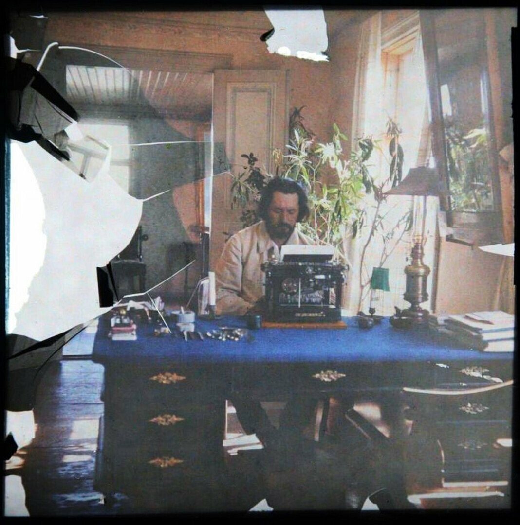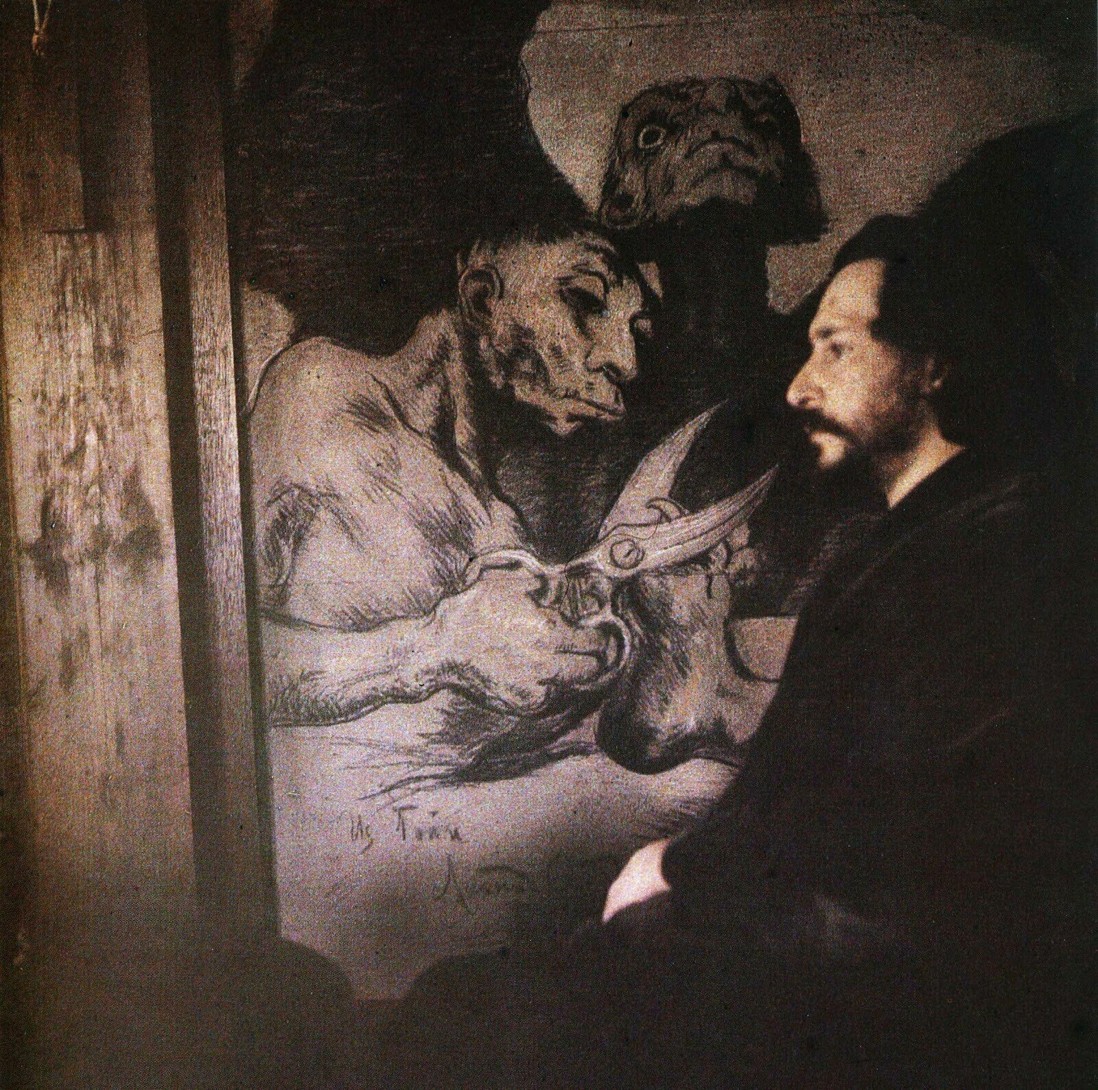 Αυτοπροσωπογραφία μπροστά από ένα σχέδιο του Γκόγια στο σπίτι του Vammasluu (1910). Φωτ.: © Leonid Andreyev