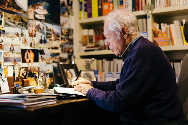 Επίσης, ξεχωρίζουν δύο προθήκες της βιβλιοθήκης του, οι οποίες είναι αφιερωμένες στους επιστήθιους φίλους του, Ζήσιμο Λορεντζάτο και Κορνήλιο Καστοριάδη. Εκεί, ανάμεσα σε άλλα, υπάρχει και το βιβλίο του πρώτου με τίτλο «Στου τιμονιού το αυλάκι». «Αυτό το βιβλίο αναφέρεται στις περιοδείες μας τα καλοκαίρια στα ελληνικά νερά του Αιγαίου» σημειώνει.