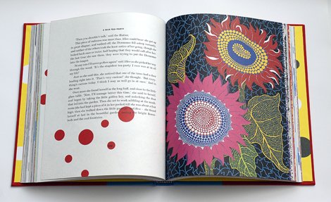 Η Yayoi Kusama μοιάζει να είναι το πιο κατάλληλο πρόσωπο για να εικονογραφήσει την Αλίκη στη Χώρα των Θαυμάτων. Η φαντασία της, οι εμμονές της που πλησιάζουν και αρκετές φορές προσπερνάνε τις παραισθήσεις έντυσε την ιστορία για άλλη μια φορά, μπαίνοντας στον κατάλογο των σπουδαίων καλλιτεχνών που προσπάθησαν να εικονογραφήσουν ένα μοναδικό βιβλίο με σκοτεινό παιχνίδισμα μεταξύ του ονείρου και φιλοσοφικών τοποθετήσεων.