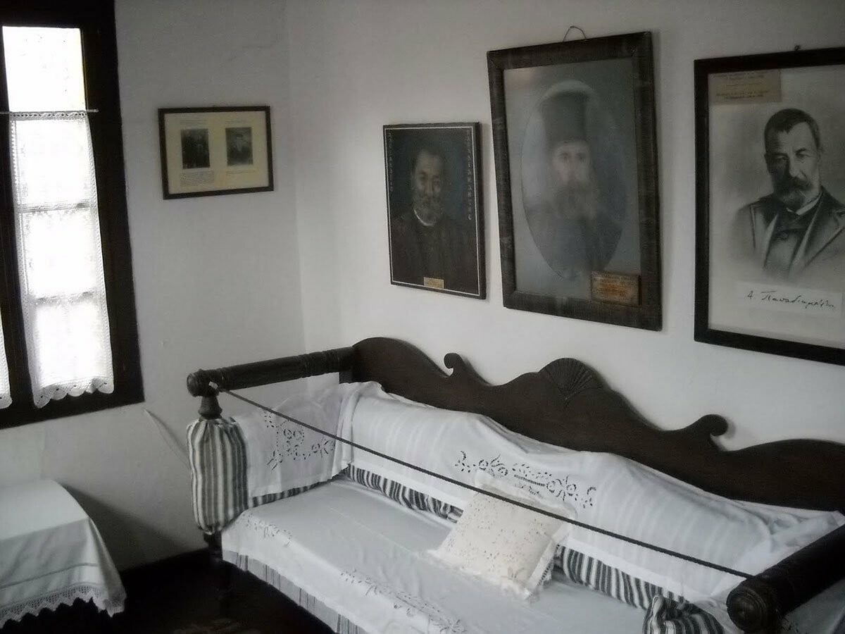 "Μέσα στο καλύβι η κανδήλα ετρεμόσβενεν εμπρός στα εικονίσματα. Η φωτιά είχε καλυφθή και πάλιν από την τέφραν. Το λυχνάρι σβηστόν εκρέματο από το μικρόν ράφι της εστίας. Ήτο σκότος. Έξω είχεν εξημερώσει, και παρά δύο λεπτά ο ήλιος θ' ανέτελλεν. Ο άνθρωπος δεν έβλεπεν ειμή αμυδράς σκιάς μέσα. Την λεχώναν εις την στρώμνην της, ως αμαυρόν όγκον κατακειμένην, το βρέφος, το οποίον εσάλευε και ανάσαινεν εντός της σκάφης ήτις εχρησίμευε ως λίκνον...και την Φραγκογιαννού καθήμενην ως φάντασμα και τείνουσαν την χείραν προς τον λίκνον..."