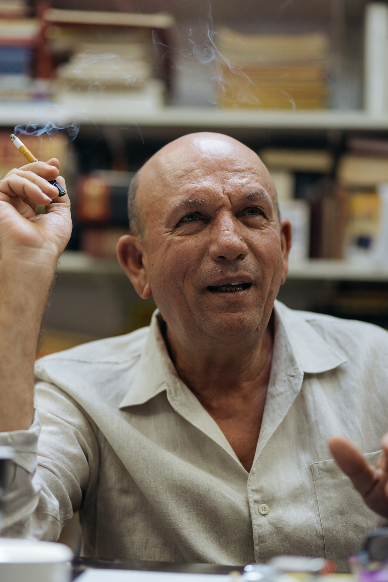 Στο παλαιοπωλείο που έχει στο Κερατσίνι, ο Βασίλης Πισιμίσης μας υποδέχεται εγκάρδια και μας κερνάει καφέ.