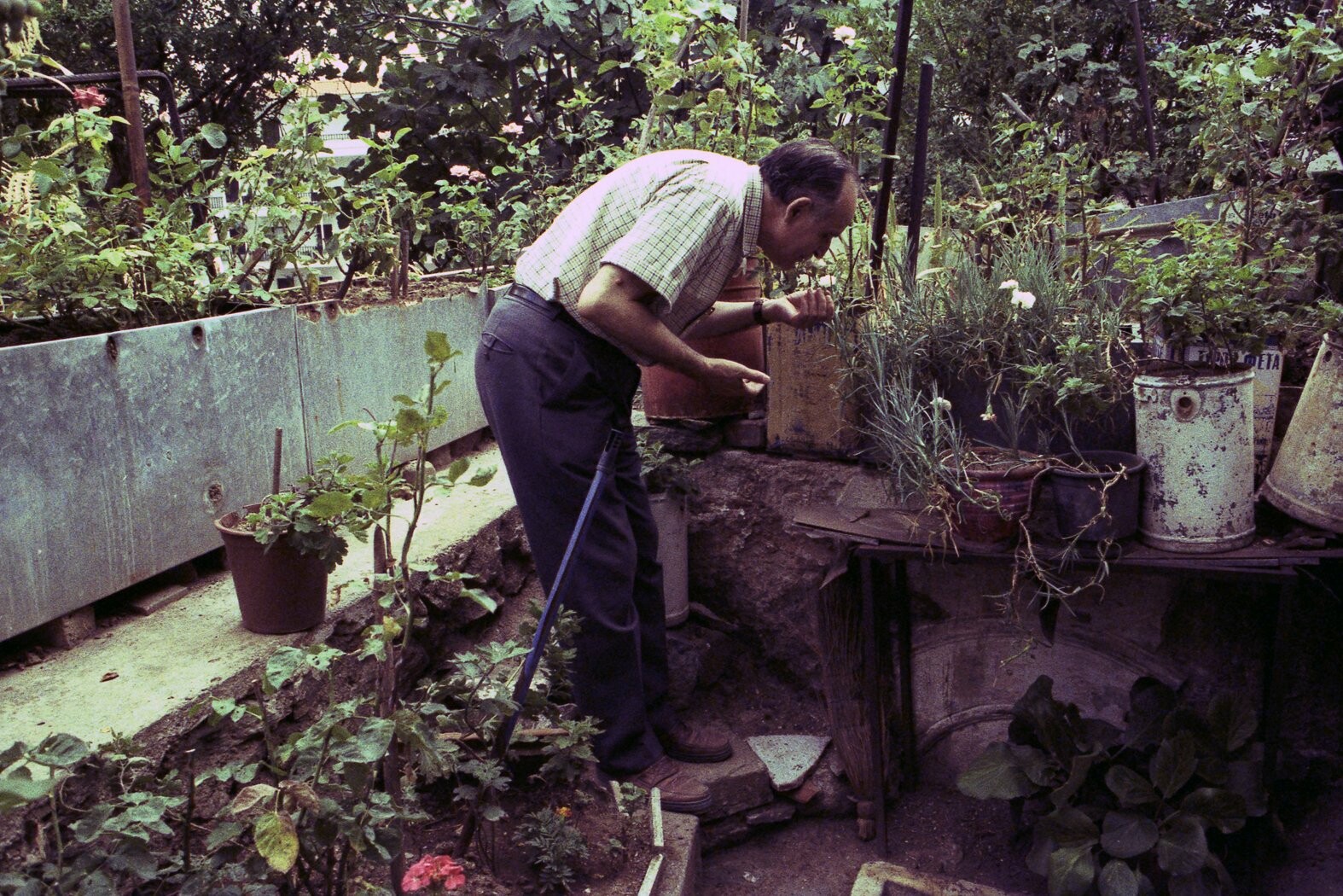 Περνάμε δίπλα από ένα πεζοδρόμιο με δύο παγκάκια κάτω από πυκνή βλάστηση. «Σου αρέσει αυτό το σκιάδειο; Έτσι λεγόντουσαν στην αρχαία Ελλάδα. Έβαζαν δύο-τρία παλούκια κι ένας θάμνος ανέβαινε μέχρι επάνω, δημιουργώντας σκιά. Μάλλον υπήρχαν πολλά τότε μες στις πόλεις». Το «σκιάδειον» μοιάζει περισσότερο με αυτοσχέδια κατασκευή που κάποιοι από τη γειτονιά ανέλαβαν.
