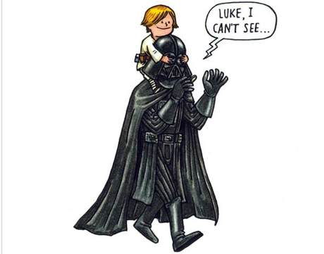 Σε ένα γλυκό και ξεκαρδιστικό βιβλίο ο κομίστας Jeffrey Brown παρουσιάζει πώς θα ήταν αν ο Darth Vader, ο σκοτεινός λόρδος, είχε μεγαλώσει τον Luke. Η φράση “Luke, I’m your father” θα είχε εντελώς άλλη σημασία αλλά ο Luke θα είχε μάθει να δένει τα κορδόνια του από τον πιο κουλ μπαμπά.