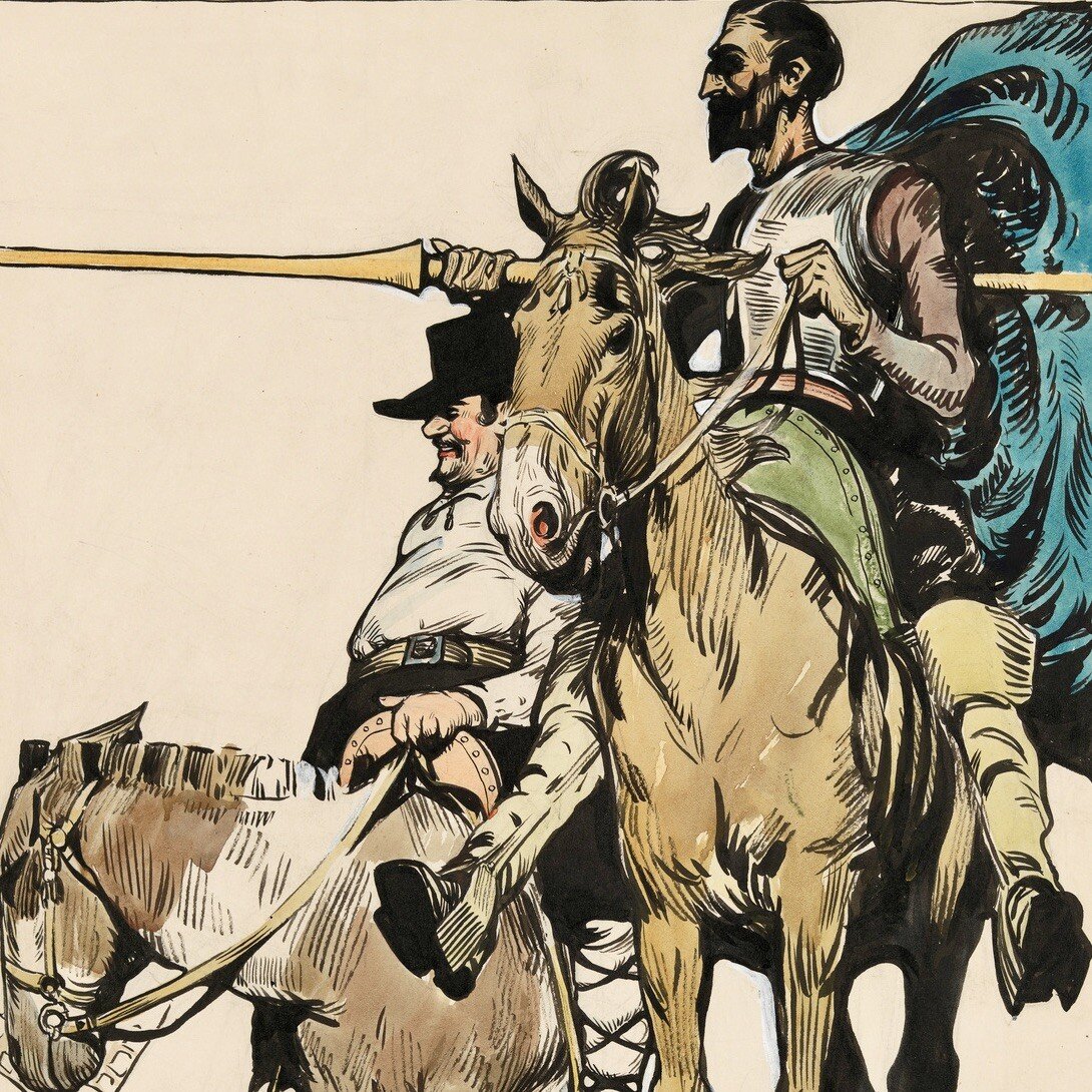 Έτσι, ο μεν παρωδεί τους στοχασμούς του δε, δίνοντας την ευκαιρία στον Θερβάντες να μπλέξει αριστοτεχνικά το ποταπό με το ιδεώδες, απόρροια και αντανάκλαση μιας ζωής μεγάλων δοκιμασιών σε έναν τυραννικό κόσμο.