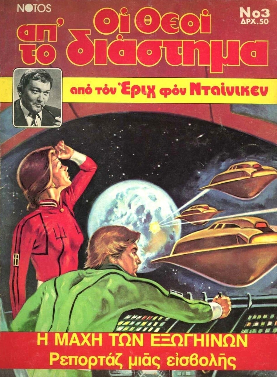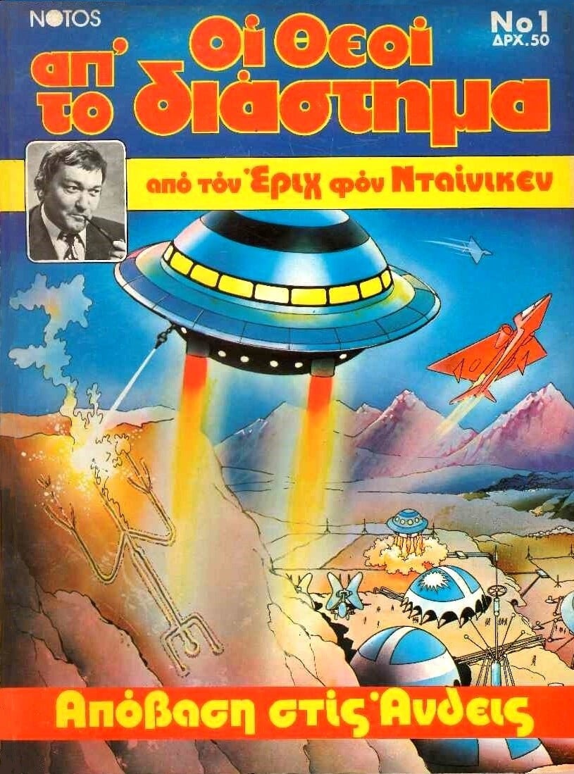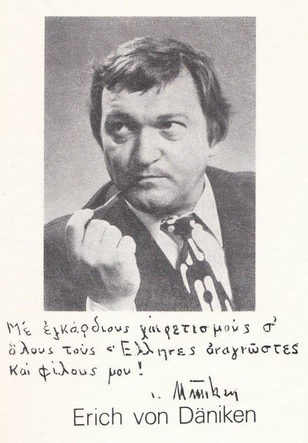 Και ήταν τότε, στο μέσο του Μαΐου του 1978, όταν ο Erich von Däniken θα επισκεπτόταν και τη χώρα μας, προσκεκλημένος των εκδόσεων Notos, για μια σειρά διαλέξεων επί ελληνικού εδάφους πλέον. Φυσικά, ο Däniken είχε έρθει κι άλλες φορές στην Ελλάδα, ιδιωτικά και ανεπίσημα, αλλά τώρα ήταν στην Αθήνα, για να μιλήσει δημοσίως και για να έλθει σε επαφή με τους χιλιάδες αναγνώστες του. Για όλα αυτά μας πληροφορεί, εκτενώς, το βιβλίο «Ο Νταίνικεν στην Ελλάδα» [Notos, 1978]. Όπως διαβάζουμε εκεί: