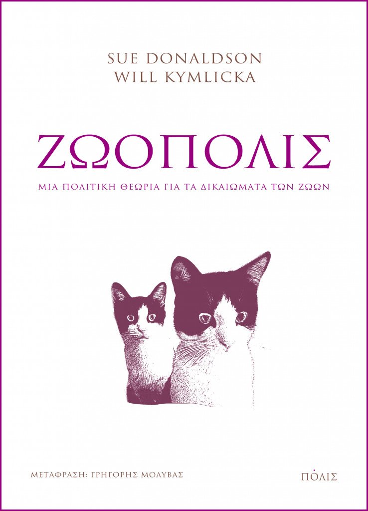 Τέσσερα χρόνια μετά διαβάζω το βιβλίο Ζωόπολις - Μια πολιτική θεωρία για τα δικαιώματα των ζώων της Σου Ντόναλντσον και του Γουίλ Κίμλικα, πολιτικών φιλοσόφων στο Πανεπιστήμιο Κουίνς του Οντάριο, στον Καναδά, όπου η κοινότητα ανθρώπων και ζώων πηγαίνει πέρα από τη φιλοζωία και την ηθική και θεμελιώνεται στην πολιτική και στα δικαιώματα.