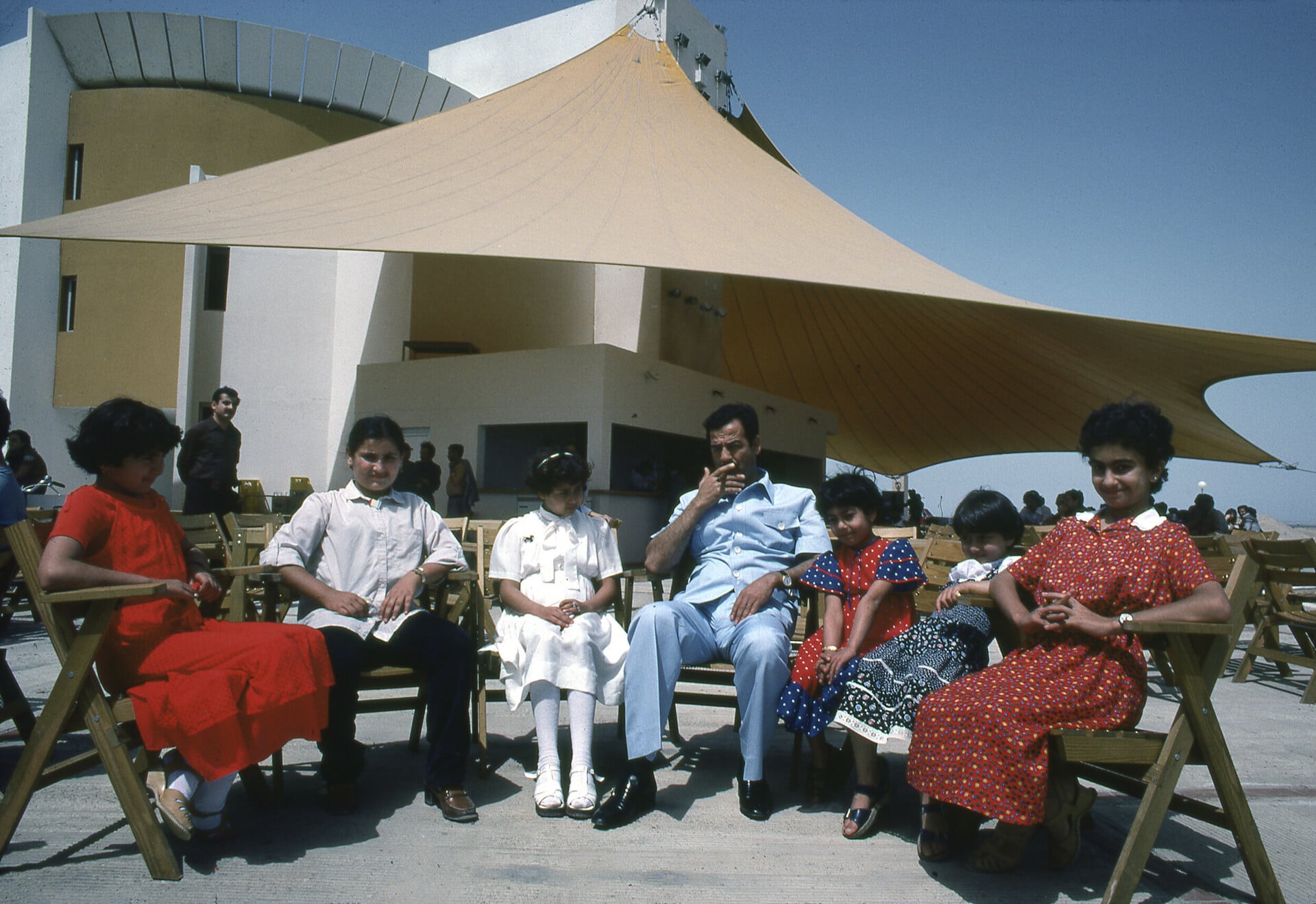 Ο Πρόεδρος του Ιράκ Σαντάμ Χουσεΐν φωτογραφίζεται με τα παιδιά του σε παραθαλάσσιο θέρετρο στη Χαμπανίγια του Ιράκ στα τέλη της δεκαετίας του 1970. Φωτ.: Getty Images/Ideal Image