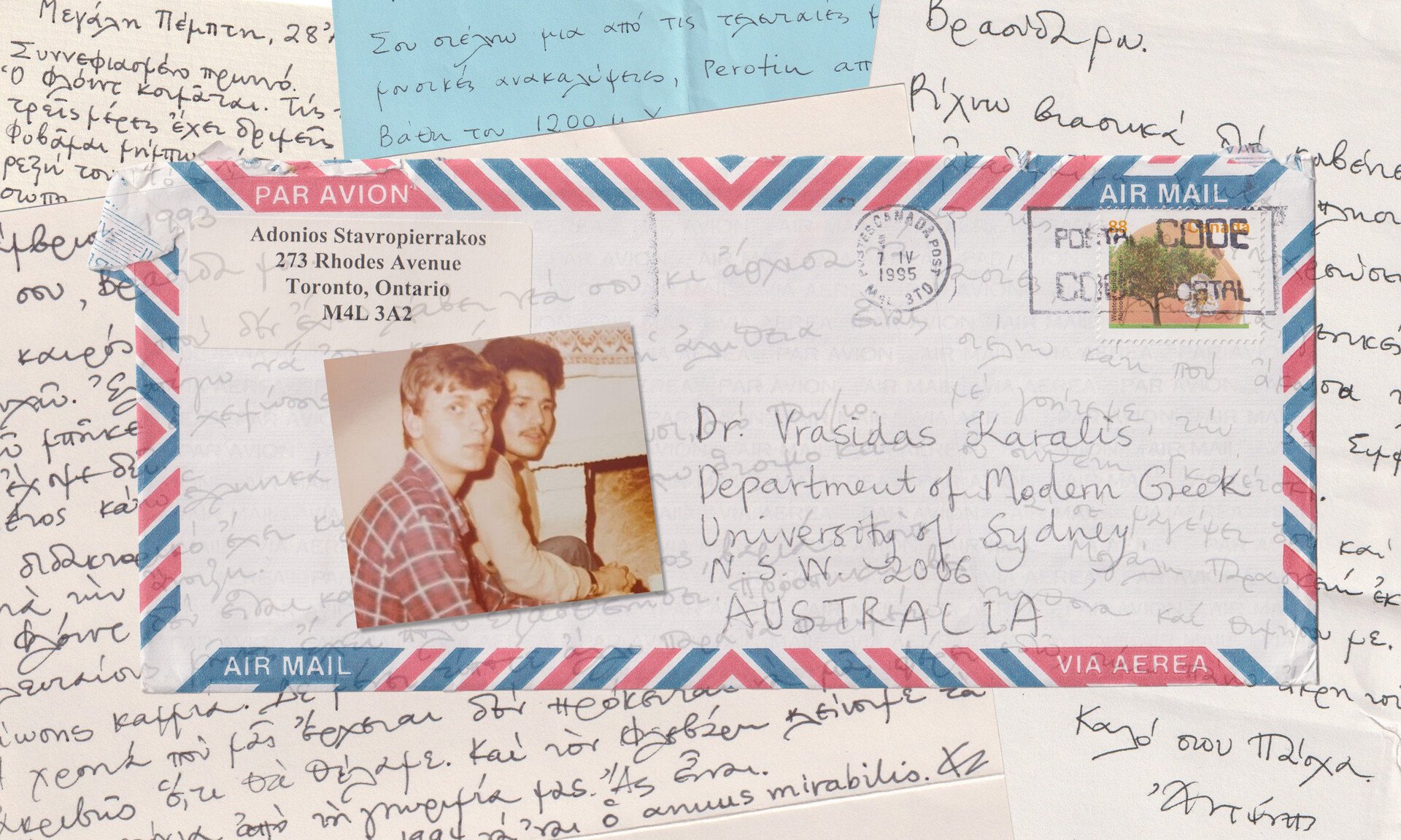 Απομένουν, λοιπόν, αυτές οι επιστολές, και γνωρίζω πως αλληλογραφούσε με άλλους αφότου μετανάστευσε. Με εκείνη την ωραία μισο-βυζαντινή γραφή του κατέγραφε όσα συνέβαιναν καθημερινά στη ζωή του στο Τορόντο. Με απλά λόγια και χωρίς περιστροφές, όπως έλεγε, για να δείξει την ατμόσφαιρα και τα συμβάντα της ζωής του.