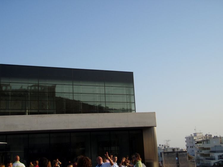 Μα είναι δυνατόν ένα τέτοιο μουσείο να λειτουργεί με καθαρά δημοσιοϋπαλληλικό ωράριο…να μην μένει ανοικτό και ως αργά την νύχτα όπου πραγματικά κανείς μπορεί να απολαύσει τις μαγικές εικόνες του ιερού βράχου και τα φώτα της πόλης? Μα πότε επιτέλους θα βρεθεί στην ηγεσία αυτού του ρημαδουπουργείου, ένα μυαλό που να μπορέσει να διαχειριστεί με όραμα τον πολιτιστικό πλούτο που διαθέτουμε? Με αυτές τις σκέψεις βγήκαμε στο ισόγειο και καθίσαμε έξω πάνω στο γυάλινο δάπεδο.