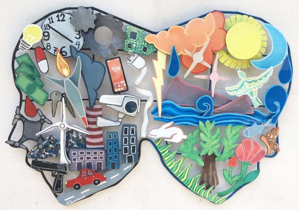 Η έκθεση διερευνά μέσω συμβόλων τη σχέση του υλικού - φυσικού κόσμου, με τον άυλο - πνευματικό, μεταφέροντας τον θεατή σε ένα κόσμο συχνοτήτων που μεταφράζονται σε γλυπτικές εικόνες. Αποτελεί μια σύνθεση προσωπικής εμπειρίας, αναζήτησης και έρευνας γύρω από το οικοδόμημα της ύπαρξης.