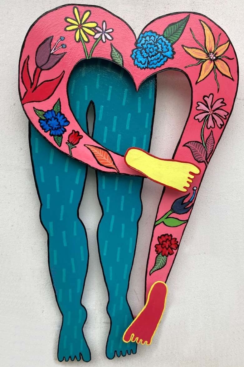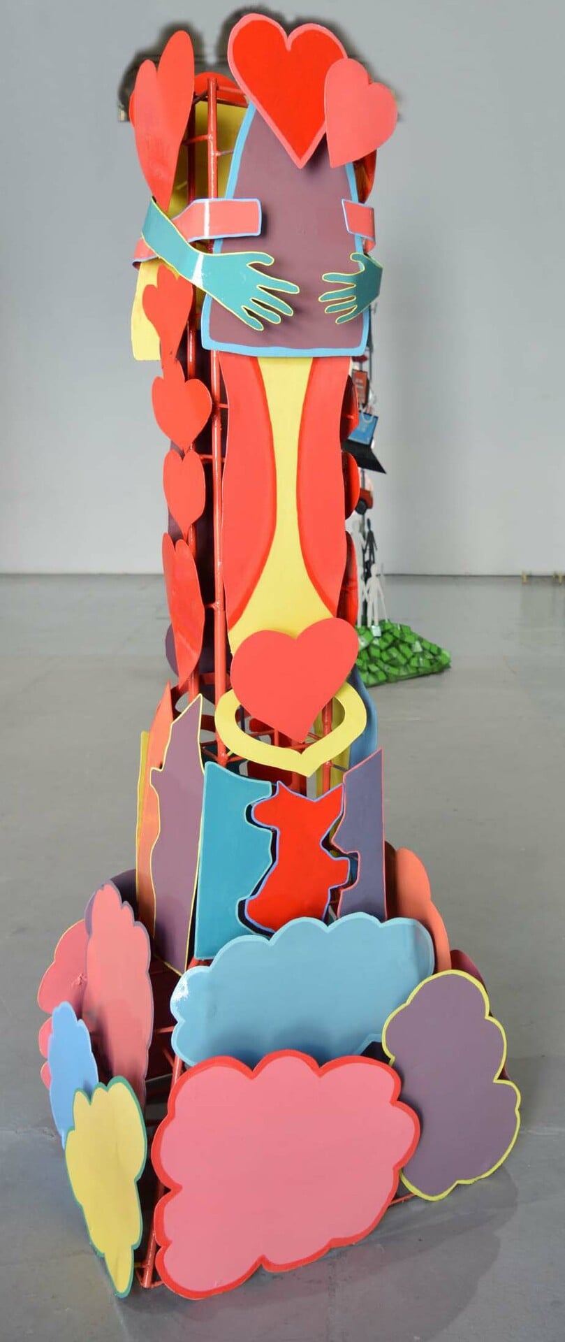 Γλυπτά μνημειακών διαστάσεων στο σχήμα και τη λογική των Τοτέμ, εναλλάσσονται με άλλα μικρότερων διαστάσεων, επιδαπέδια ή επιτοίχια, γλυπτά με κοινό χαρακτηριστικό τα έντονα φλούο χρώματα που επιχρωματίζουν το μέταλλο και τις επιρροές της Ποπ κουλτούρας και αισθητικής.