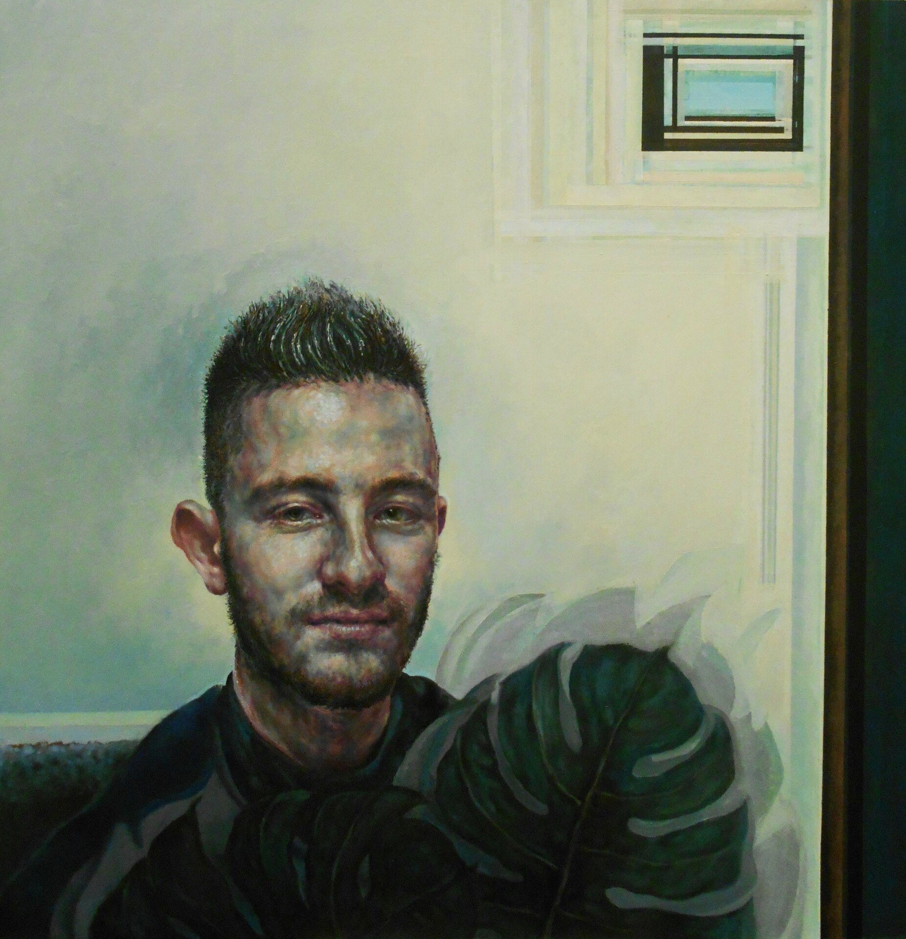 Ενσωματώνει έκκεντρα τα ανθρώπινα πρόσωπα στα ποικίλα φόντα των έργων - φόντα που άλλοτε ορίζονται από επάλληλα γεωμετρικά σχήματα, άλλοτε από ένα δευτερεύον πλαίσιο μέσα στο κύριο πλαίσιο του έργου, δημιουργώντας έτσι ένα παιχνίδι mise en abyme που υπονοεί τη συνύπαρξη πολλαπλών επιπέδων θέασης.