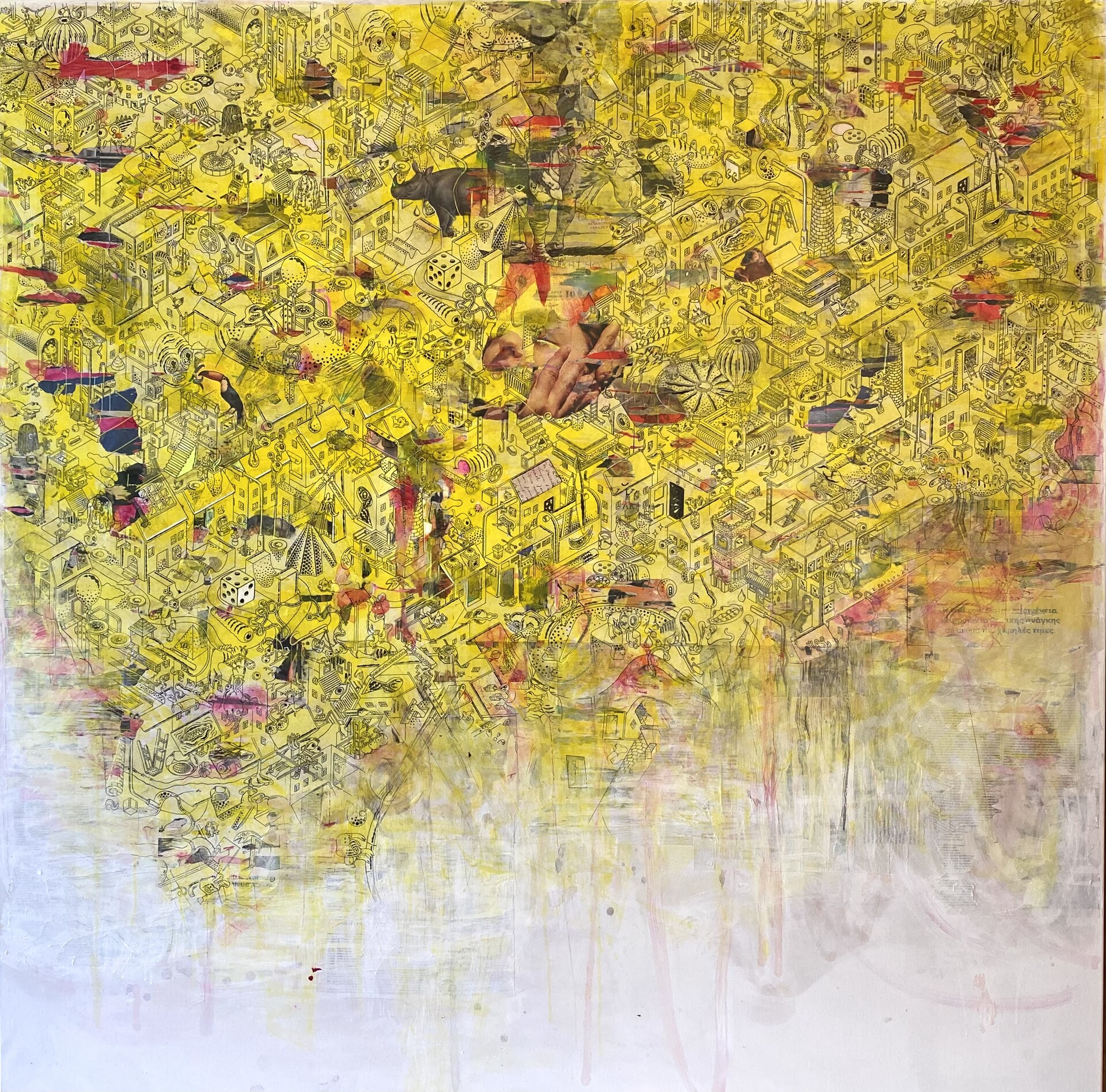 Ο Κωνσταντίνος Πάτσιος αναφέρει για το έργο του: “Στην έκθεση "Nature inside the walls" που αποτελεί μια συνομιλία με τον εικαστικό Μάριο Φούρναρη αλλά και με το υπάρχον υλικό του Μουσείου Ηρακλειδών, παρουσιάζω ένα σύνολο νέων έργων. Η ενότητα αυτή περιλαμβάνει ποικίλα εικαστικά μέσα, από ζωγραφική και φωτογραφία έως σύνθετα readymades και κολάζ, και επικεντρώνεται στη σχέση μεταξύ του φυσικού περιβάλλοντος και του αστικού χώρου, υπό την ανθρώπινη επίδραση. Η δουλειά μου συνιστά ένα δυναμικό οικοσύστημα, όπου φαινομενικά ασύνδετα στοιχεία συνυπάρχουν, συγκροτώντας μια κοινότητα από μορφές, ικανές να γεννούν πολλαπλές και αλληλοδιάδοχες αφηγήσεις. Ο διάλογος με τα εκθέματα του Μουσείου και με τη δουλειά του Μάριου Φούρναρη στοχεύει στη διαμόρφωση μιας ενιαίας αφήγησης που ανατέμνει το δίπολο φύση–πόλη μέσα σε ένα πλαίσιο ιστορικό και βιωματικό. Οι σύγχρονες πόλεις μεταμορφώνονται στα έργα μου σε εικαστικά τοπία που αποτυπώνουν τη σχέση με την άγρια ζωή — αυτήν που φιλοξενούν αλλά και αυτήν που αποκλείουν. Η νέα αυτή σειρά έργων προέκυψε από μια διάθεση καταγραφής της βιοποικιλότητας: Ελέφαντες, λιοντάρια, νυχτοπεταλούδες, σπουργίτια και άλλα ζώα της άγριας ζωής εμφανίζονται στα έργα, αναδεικνύοντας το αστικό τοπίο ως έναν φαντασιακό λαβύρινθο, υπαρκτής και ψυχικής σημασίας ταυτόχρονα. Η κλιματική αλλαγή διατρέχει το έργο μου σαν ένα αλλόκοτο φως που διαχέεται στο τοπίο, μεταβάλλοντάς το διαρκώς. Πολλά από τα έργα λειτουργούν ως παλίμψηστα: πολύχρωμα, πολυεπίπεδα μωσαϊκά που γίνονται καταφύγια για την άγρια ζωή. Το εικαστικό μου αποτύπωμα αναδεικνύει το ανθρώπινο ίχνος, που όσο εξελίσσεται —τεχνολογικά και πληθυσμιακά — τόσο συρρικνώνει τον φυσικό κόσμο. Ο άνθρωπος υπήρξε η κορωνίδα της Δημιουργίας στις δικές του αφηγήσεις. Σε έναν κόσμο που λειτουργεί μέσα από αλληλεξαρτήσεις, η ανθρώπινη υπεροχή συνεπάγεται ευθύνη απέναντι στο σύνολο της ζωής. Οι νέες μου εικόνες επιδιώκουν τη σύνθεση μιας νέας πραγματικότητας, όπου ένας ελέφαντας και ένας ουρανοξύστης ισορροπούν αρμονικά πάνω σε μια οπτική ίνα — μια μεταφορά της ανάγκης για συνύπαρξη, ισορροπία και σεβασμό.”