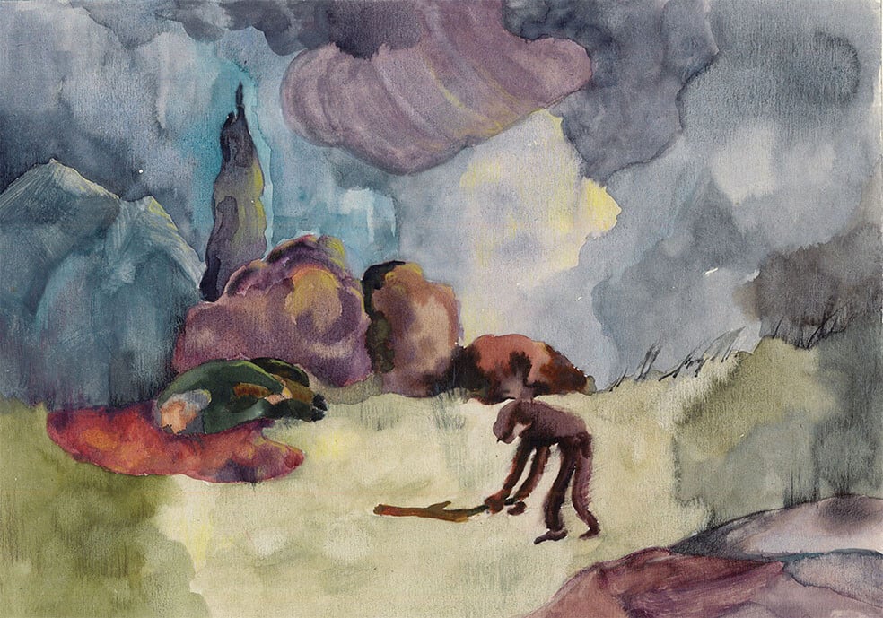 Μέσα σε αυτό το σκηνικό, το κυπαρίσσι επανέρχεται σαν μοτίβο, σχεδόν σαν προσευχή. Στην πράξη λειτουργεί ως σημείο αναφοράς και έμπνευσης. Ένας κάθετος άξονας που συνδέει τη γη με τον ουρανό. Συχνά, το δέντρο αυτό με την κόμη του τρυπά τα σύννεφα, σαν να αναζητά την ένωση με το θείο, άλλοτε λικνίζεται σαν να λοξοδρομεί, ή να χορεύει τον χορό του Ζαλόγγου. Το αιώνιο μεταναστευτικό και οι πόλεμοι είναι θεματικές που απασχολούν έντονα την ίδια και διαφαίνονται μέσα στα έργα της, καθώς οι μορφές της μοιάζουν εγκλωβισμένες σε μια απόκοσμη, διαρκή μετακίνηση. Η παρουσία του δέντρου, λοιπόν, υποδηλώνει αυτόν τον διττό συμβολισμό· μια πνευματική ανάταση, μια αναπνοή ελπίδας μέσα στη μελαγχολία των τοπίων αλλά και ένα μνήμα, μια ανάμνηση των θανούντων.