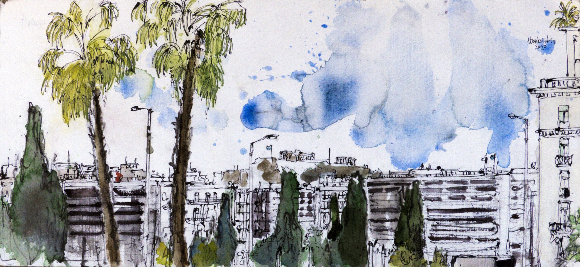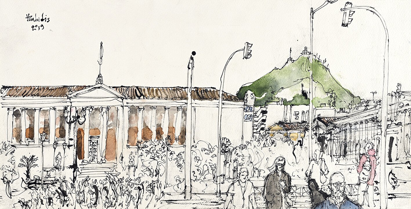 Ο Πάβλος Χαμπίδης με μια σειρά σχεδίων με μελάνι και ακουαρέλες τις οποίες παρουσιάζει στο Electra Art Space της γκαλερί Σκουφά στο Σύνταγμα, μας ξυπνά από αυτό το λήθαργο. Μας ξαναδείχνει με ώριμη εικαστική ματιά την πόλη μας. Μας αποκαλύπτει την ψυχή της Αθήνας, ξαναδίνει χρώμα στη ματιά μας και αποτυπώνει αξιοθέατα της πόλης με τρόπο αβίαστο και καθησυχαστικό. Η έκθεση εγκαινιάζεται στις 23 Οκτωβρίου και θα διαρκέσει έως τις 15 Νοεμβρίου.