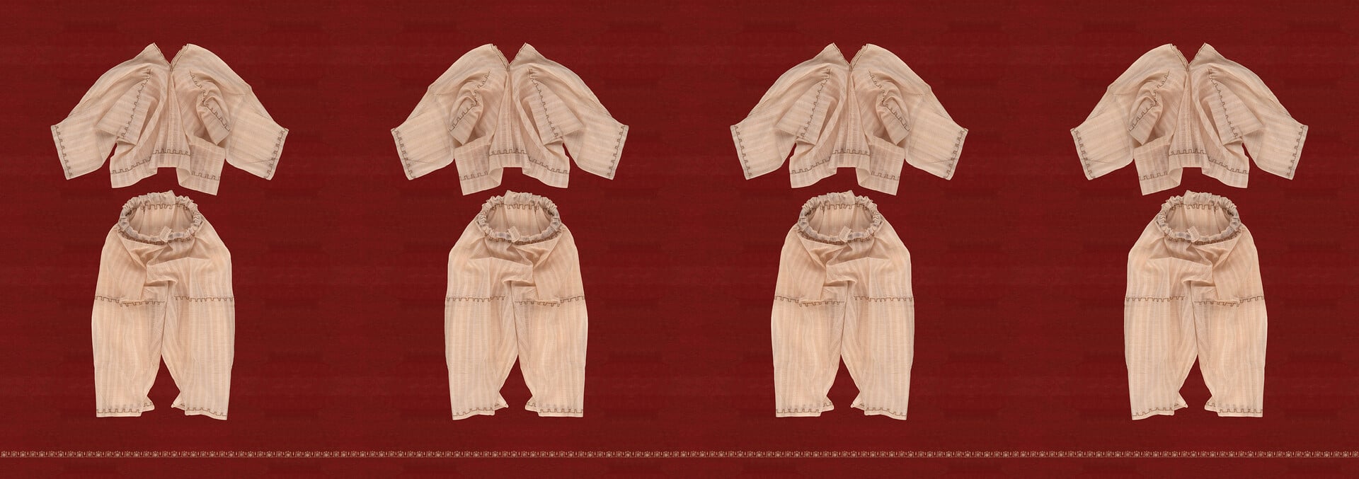 Με αφορμή τη γυναικεία φορεσιά της Πάρου, η Υπαπαντή Ρούσσου, η έρευνα της οποίας στάθηκε πολύτιμη για το παρόν εγχείρημα και τον εικαστικό διάλογο που αυτό σηματοδοτεί, αναφέρει μεταξύ άλλων ότι η παριανή φορεσιά των αρχών του 20ου αιώνα «είναι έντονα επηρεασμένη από την μόδα των χωρών της δυτικής Ευρώπης, αφού η θάλασσα έφερνε τους νησιώτες σε επαφή με τη Ανατολή και τη Δύση. Η σύνδεση ιδιαίτερα με τη Δυτική Ευρώπη χρονολογείται ήδη από τον 13ο μ.Χ. αιώνα, όπως φαίνεται και από τις ιταλικές επιρροές στη μεσαιωνική φορεσιά του νησιού», ενώ τα εσωτερικά της κομμάτια παρουσιάζουν σημαντικές ομοιότητες με αυτά του 16ου-19ου αιώνα». Η πουκαμίσα, «συνήθως αμάνικη -βασικό στοιχείο της καθημερινής αλλά και της γιορτινής φορεσιάς που φοριόταν κατάσαρκα σαν ένα σημερινό φόρεμα-«, ο μπούστος, «είδος στηθόδεσμου που φοριόταν πάνω από την πουκαμίσα», το πορτελάτο, «το λευκό βρακί της εποχής που είχε μπατζάκια και πολλές φορές έφτανε ως τα γόνατα, όπου ενωνόταν με τις κάλτσες και δενόταν με κορδονάκια-φακαρόλες στη μέση αλλά και στα μπατζάκια», το λευκό γιορτινό ή καθημερινό σκουρόχρωμο μισοφόρι, μια «εσωτερική φούστα, μακριά ως τις γάμπες και φοριόταν πάνω από την πουκαμίσα», η λευκή καμιζόρα, «το ένδυμα του ύπνου, νυχτικό, με μανίκια και έφθανε ως τη μέση, με μικρές πιέττες και πολλές δαντέλλες».