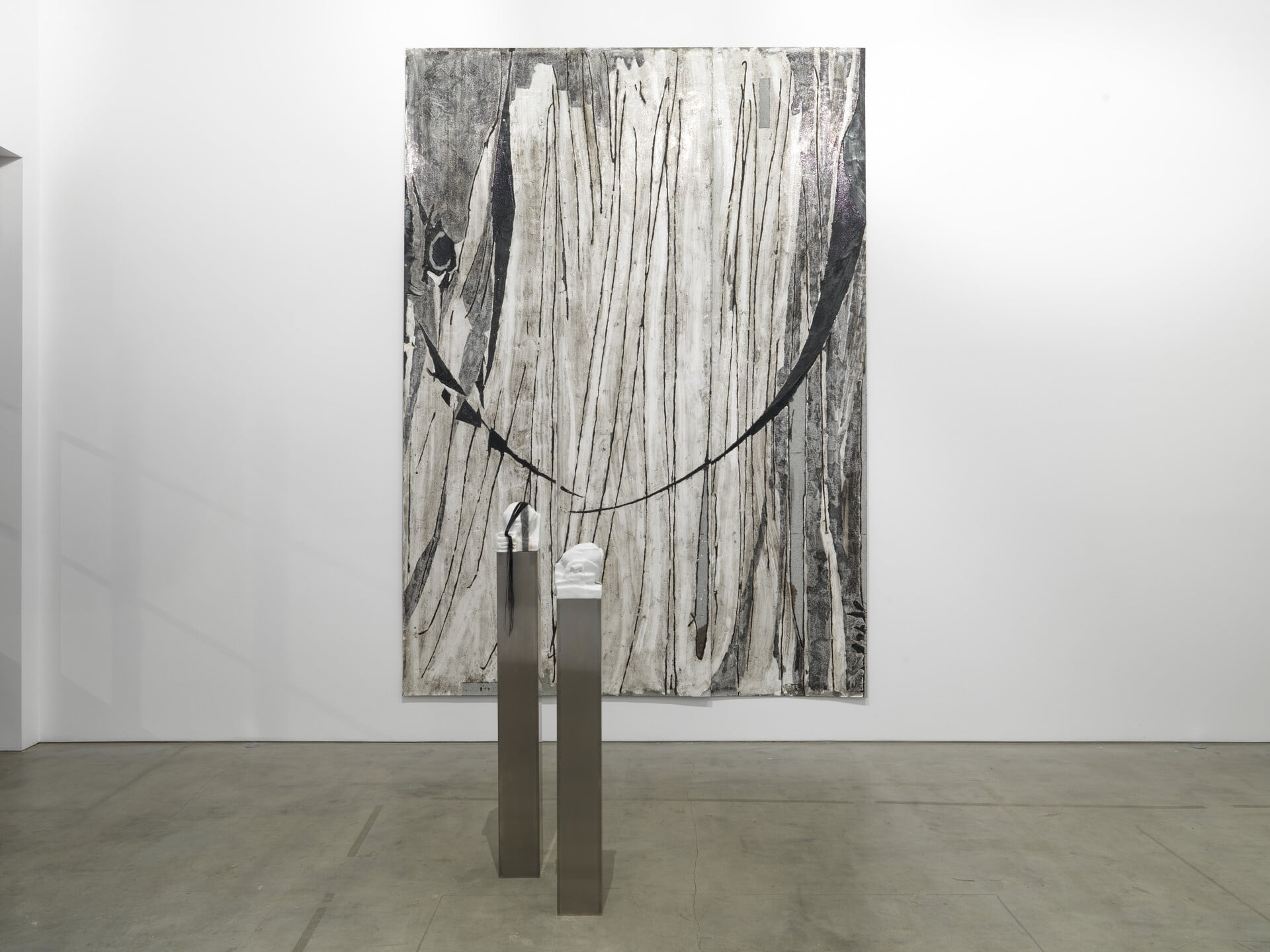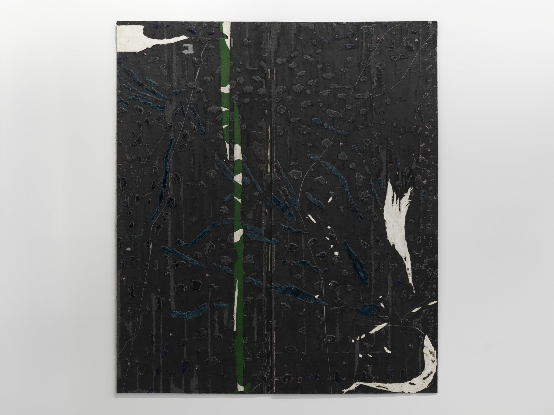 Τα βιοµηχανικά υλικά λειτουργούν ως καµβάδες πάνω στους οποίους η ζωγραφική εµφανίζεται µέσα από ίχνη, τοµές και καψίµατα, µετατρέποντας κάθε επιφάνεια σε πεδίο ανάγνωσης και κάθε σηµάδι σε µορφή γραφής.