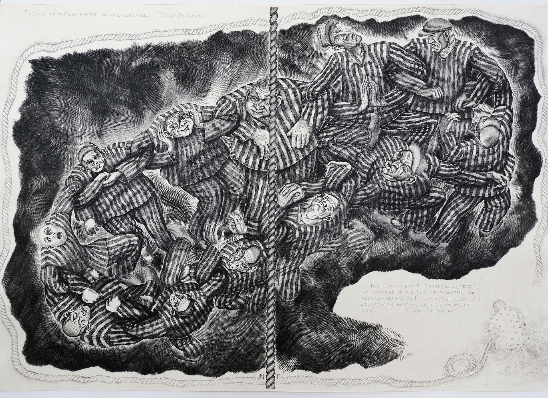 Στην έκθεση παρουσιάζονται ολόκληρα και σε συνομιλία, δύο σπάνια βιβλία - λευκώματα με αυθεντικές χαρακτικές εικόνες των δημιουργών. Οι επισκέπτες θα έχουν την ευκαιρία να γνωρίσουν από κοντά το έργο του Notton μέσα από την εικονογράφηση της «Μπαλάντας της Φυλακής του Ρέντιγκ» του Oscar Wilde (1951). Οι εικόνες του μιλούν για τον εγκλεισμό και την απόλυτη ταπείνωση του θανατοποινίτη φυλακισμένου αντι-ήρωα του έργου. Με αιχμηρότητα, λεπτομέρεια και δεξιοτεχνία, η εικονογράφηση του εγκλεισμού εντυπώνεται τόσο σε οπτικό όσο και σε πνευματικό βάθος. Όλες οι λεπτομέρειες, οι σκηνές και οι εικόνες στο έργο του εντείνουν την ζοφερή και αποπνικτική αίσθηση της ψυχικής φυλάκισης, της ανωνυμίας, της εκμηδένισης και της κοπιώδους μάχης για επιβίωση.