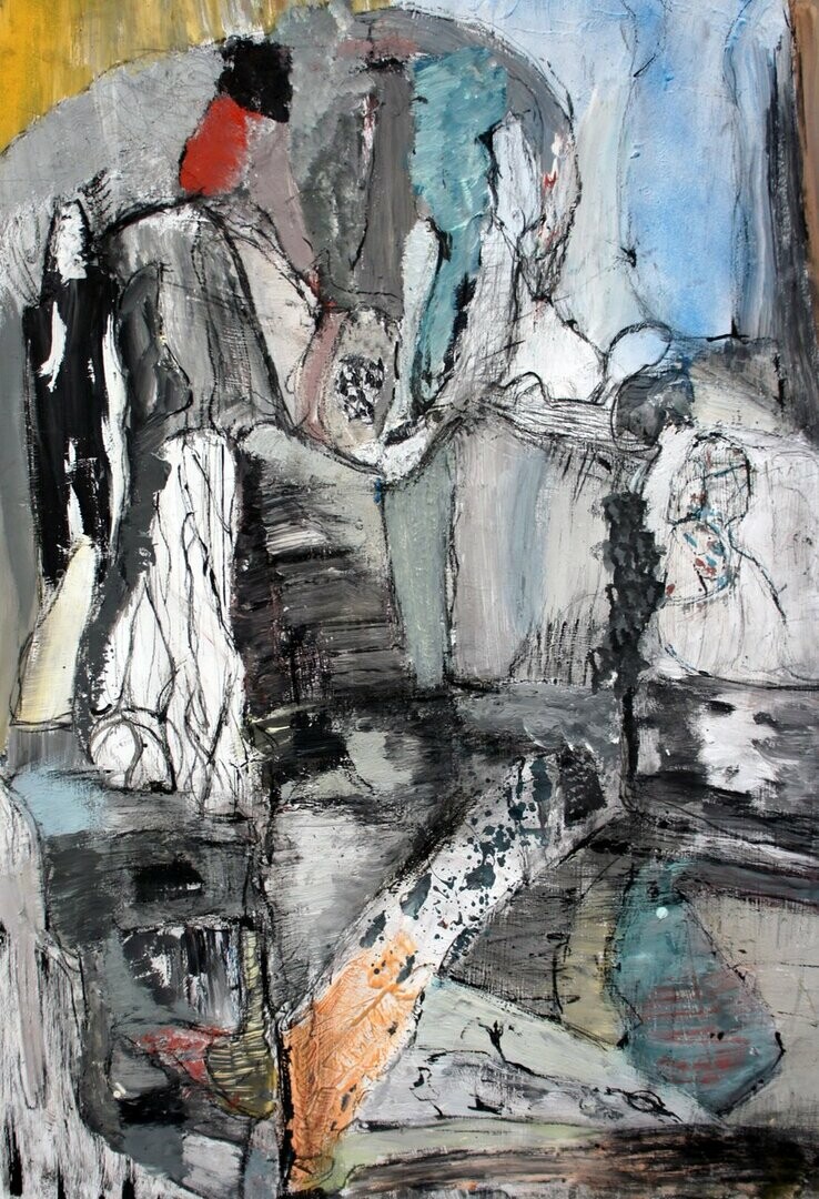 Η ύπαρξη – ανυπαρξία χώρου αποδίδεται με μορφοπλαστική και χρωματική λιτότητα. Στον περιβάλλον χώρο των μορφών κυριαρχούν το λευκό, το μαύρο και το μπλε χρώμα ενώ τα ελάχιστα σχηματικά περισσότερο αποδοσμένα μορφολογικά στοιχεία που προσδιορίζουν τον χώρο, χαρακτηρίζονται από τις περίτεχνες φόρμες τους, που προσδίδουν στις συνθέσεις των έργων την αίσθηση ενός φανταστικού, παραμυθένιου, κατασκευασμένου τοπίου.
