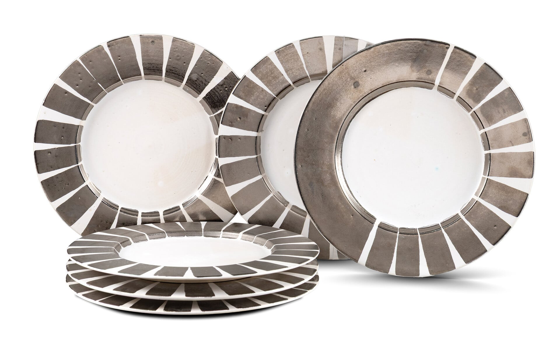 Lot158, Ελένη Βερναδάκη, Έξι κεραμικά αντικείμενα, earthenware με λευκό υάλωμα και ρευστό ασήμι, Εκτίμηση €7.000-9.000