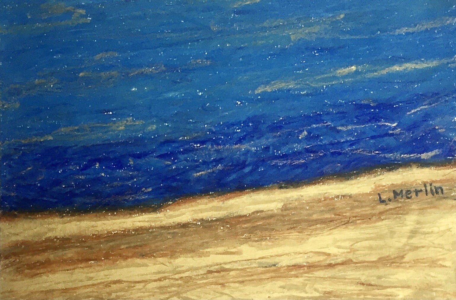 Η Λίζα Μέρλιν – Βασιλάτου με θέρμη, δύναμη και ευαισθησία επιδιώκει να εκφράσει το απόλυτα προσωπικό της όραμα με χρώμα, φως και φόρμες, να καθορίσει τη ζωτική της σχέση με τον κόσμο που την περιβάλλει και να καταστήσει ορατά ως ψυχικά αποτυπώματα, τα βιώματα και τους στοχασμούς της».