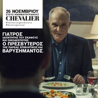 Το "Chevalier", είναι μια καυστική και τρυφερή σάτιρα για τον ανδρικό ανταγωνισμό, και όχι μόνο με ένα εξαιρετικά δεμένο καστ που αποτελείται από τους Γιώργος Κέντρος, Πάνος Κορώνης, Βαγγέλης Μουρίκης, Μάκης Παπαδημητρίου, Γιώργος Πυρπασόπουλος, Σάκης Ρουβάς.