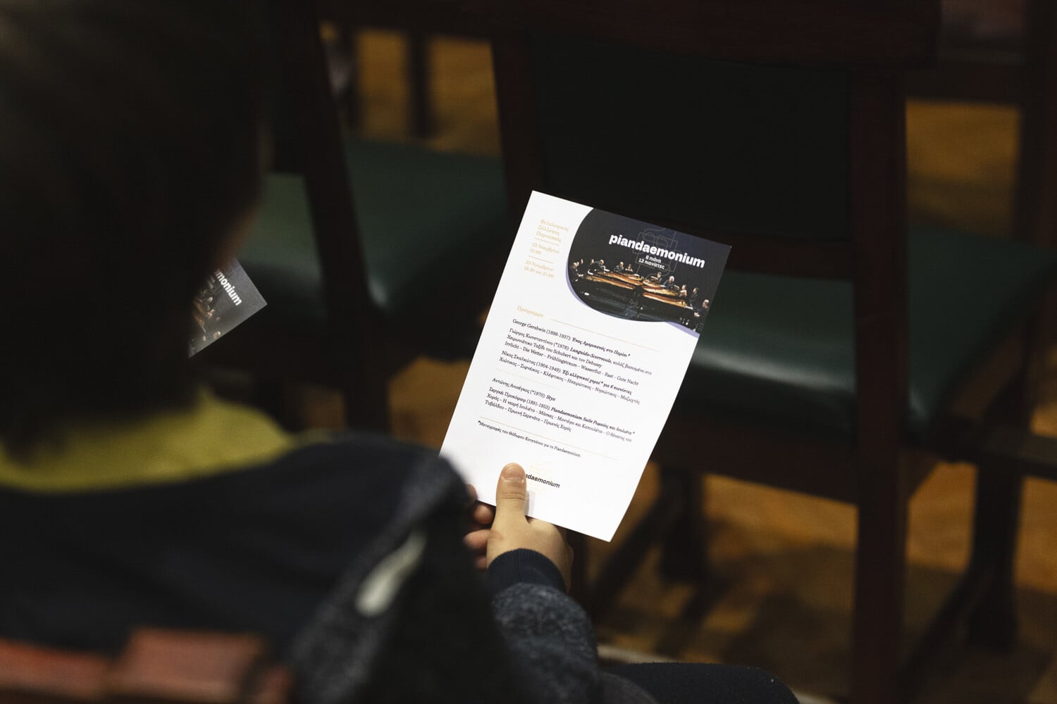 Το Piandaemonium προσκαλεί το κοινό σε ένα πολυπιανιστικό ηχητικό ταξίδι σε διαφορετικές εποχές, αισθητικές και τόπους με οδηγό 120 δάχτυλα πάνω σε 528 πλήκτρα σε συντονισμό χωρίς μαέστρο. Τα έργα που θα ακουστούν έχουν γραφτεί ή διασκευαστεί ειδικά για το σύνολο.