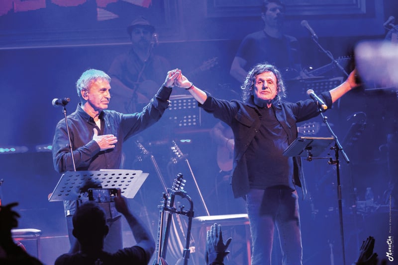 Η θρυλική συνάντηση που έγραψε ιστορία επανέρχεται για δεύτερη χρονιά. Οι δύο εμβληματικοί ερμηνευτές αφηγούνται –μέσα από σπουδαία τραγούδια– στιγμές της νεότερης Ελλάδας, ενώ ο Οδυσσέας Ιωάννου, επί σκηνής, υφαίνει τις γέφυρες ανάμεσα στις προσωπικές και συλλογικές μνήμες.