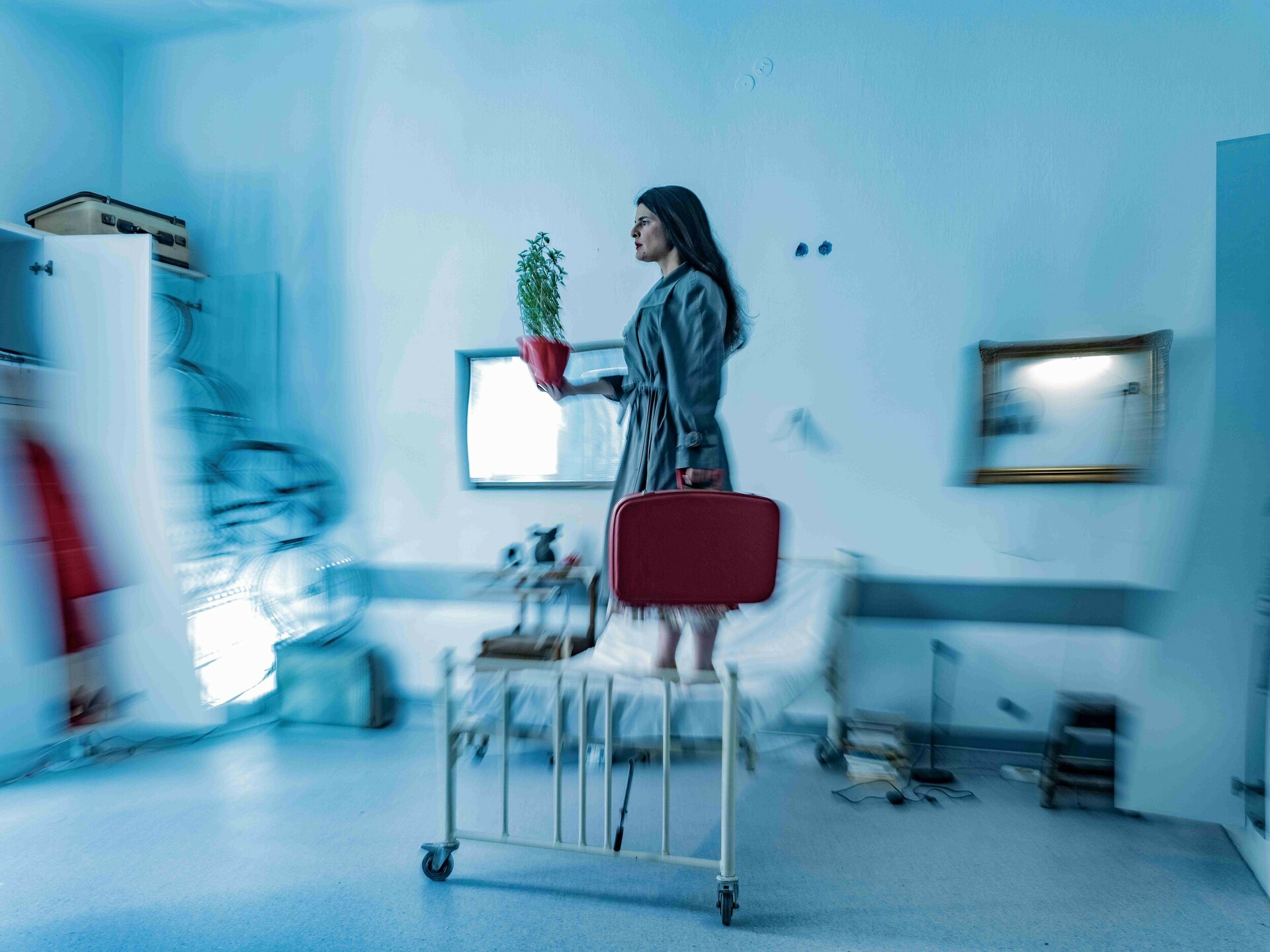 Δεν είναι ένα εύκολο ταξίδι αυτό. Σημασία έχει, όπως ακούμε, αν προλάβαμε, αν υπήρχε πρόληψη, αν το σκεφτήκαμε, αν τρέξαμε για μαστογραφία, και η αγωνία της αναμονής των αποτελεσμάτων. Είναι σαν το κορίτσι με τη βαλίτσα που μπαίνει σε ένα δωμάτιο με τα αντικείμενά του γύρω του και ξαπλώνει σε ένα κρεβάτι. Μοιραζόμαστε τον φόβο, την αγωνία, ενώ σε ένα επόμενο δωμάτιο που μοιάζει με εκκλησάκι ή ιερό της ζωής μυρίζουμε τα αναμμένα κεριά και σε ένα επόμενο μετράμε παιδικά παιχνίδια. Είναι σαν σκέψεις πριν μπεις σε ένα χειρουργείο, αναμνήσεις και υπομνήσεις ασήμαντων πραγμάτων που ξαφνικά αποκτούν υπόσταση και σώμα. Κάθε δωμάτιο είναι μια εμπειρία που μας συνδέει με την προηγούμενη ζωή μας, που σε μια περιπέτεια υγείας μοιάζει πολύ μακρινή αλλά είναι τόσο σημαντική για να μας κρατήσει όρθιους, μια αόρατη και δυνατή κλωστή. Είναι μια περφόρμανς συμφιλίωσης, μια έκθεση του άλλου, μια σύνδεση με τον εαυτό μας. Η κοπέλα που λούζει τα μαλλιά της τα οποία μπορεί να μην υπάρχουν σε λίγο, ο γιατρός, σωτήρας ή κομιστής της κακής είδησης, η κάθε είσοδος και έξοδος στα δωμάτια είναι σαν μια κατάβαση σε έναν προσωρινό σκοτεινό κόσμο και μια ανάβαση στη ζωή, οι φάσεις από τη διάγνωση μέχρι το ελπιδοφόρο τέλος που όλοι προσδοκούν.