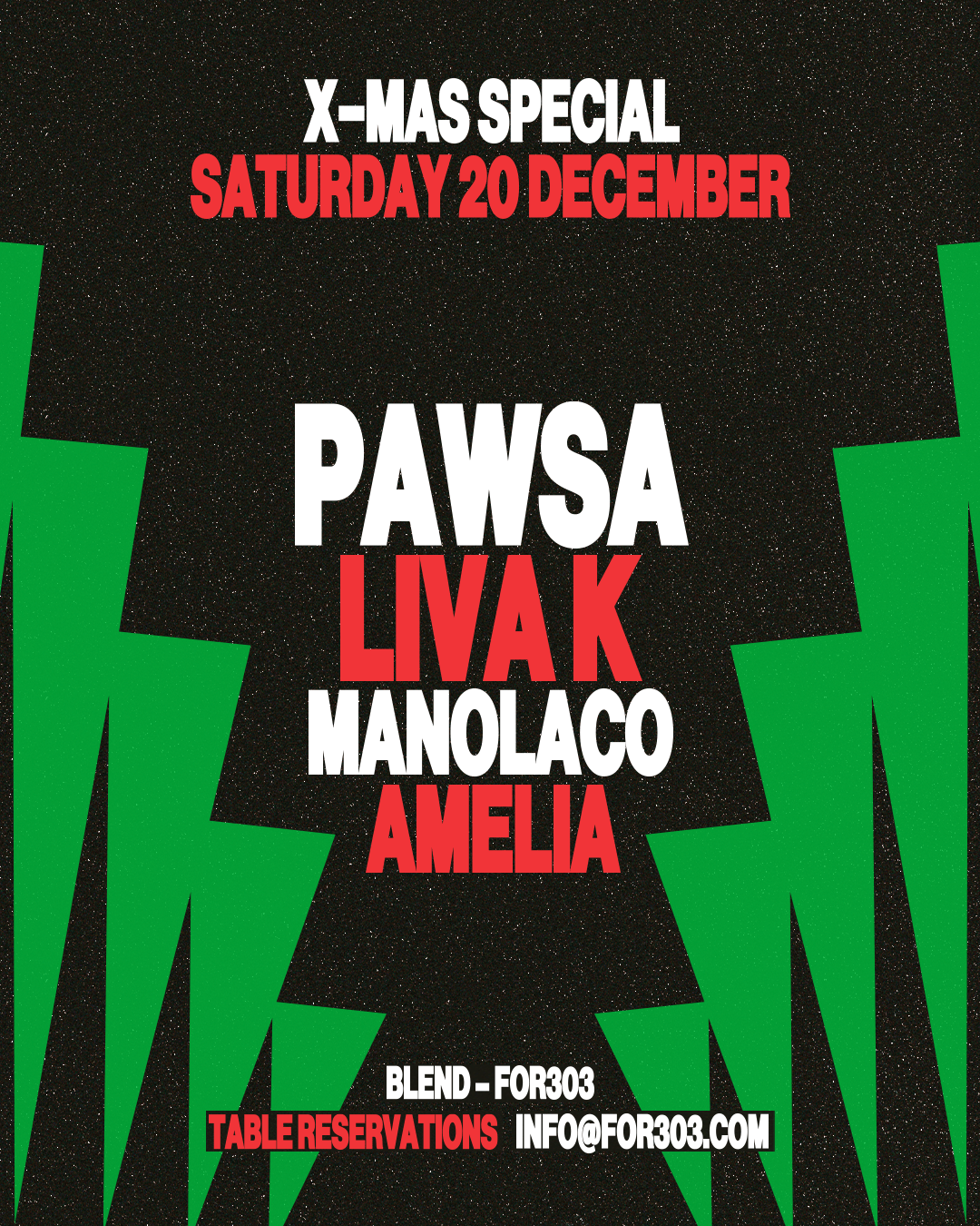 Το Σάββατο 20 Δεκεμβρίου, τα BLEND και FOR303 στήνουν ένα X‑Mas Special που δεν βασίζεται στη χριστουγεννιάτικη αισθητική, αλλά στο groove. Στο κέντρο της βραδιάς βρίσκεται ο PAWSA, ένα από τα πιο αναγνωρίσιμα πρόσωπα της σύγχρονης house σκηνής, ο οποίος επιστρέφει στην Αθήνα με ένα set φτιαγμένο αποκλειστικά για τη συγκεκριμένη νύχτα.