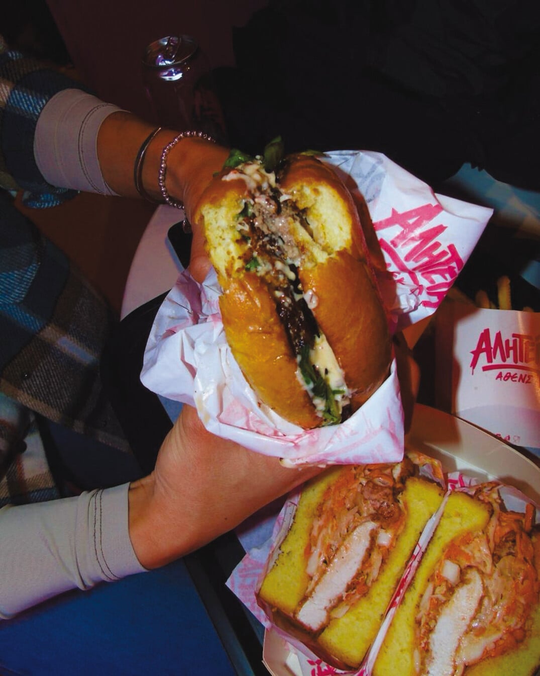Στο Αλητεία Άθενς όλα είναι χειροποίητα. Και όταν λέμε όλα, εννοούμε όλα. «Το μαγαζί ανοίγει στις 17:00 κι εμείς είμαστε εδώ από τις 10:00 για να κάνουμε προετοιμασία και να μαγειρέψουμε», λένε ο Κώστας Κοντογιάννης και Γιώργος Παππάς που βρίσκονται πίσω από την όλη ιδέα. Από τα μπιφτέκια μέχρι τις sauces, τα ψωμάκια που φτιάχνονται με signature συνταγή μέχρι τα cocktails που είναι μια ειδική περίπτωση –στην οποία θα επανέλθουμε– όλα ακολουθούν μια εστιατορική φιλοσοφία που προσφέρεται σε street food, με τον Κώστα να βρίσκεται στο τιμόνι της κουζίνας.