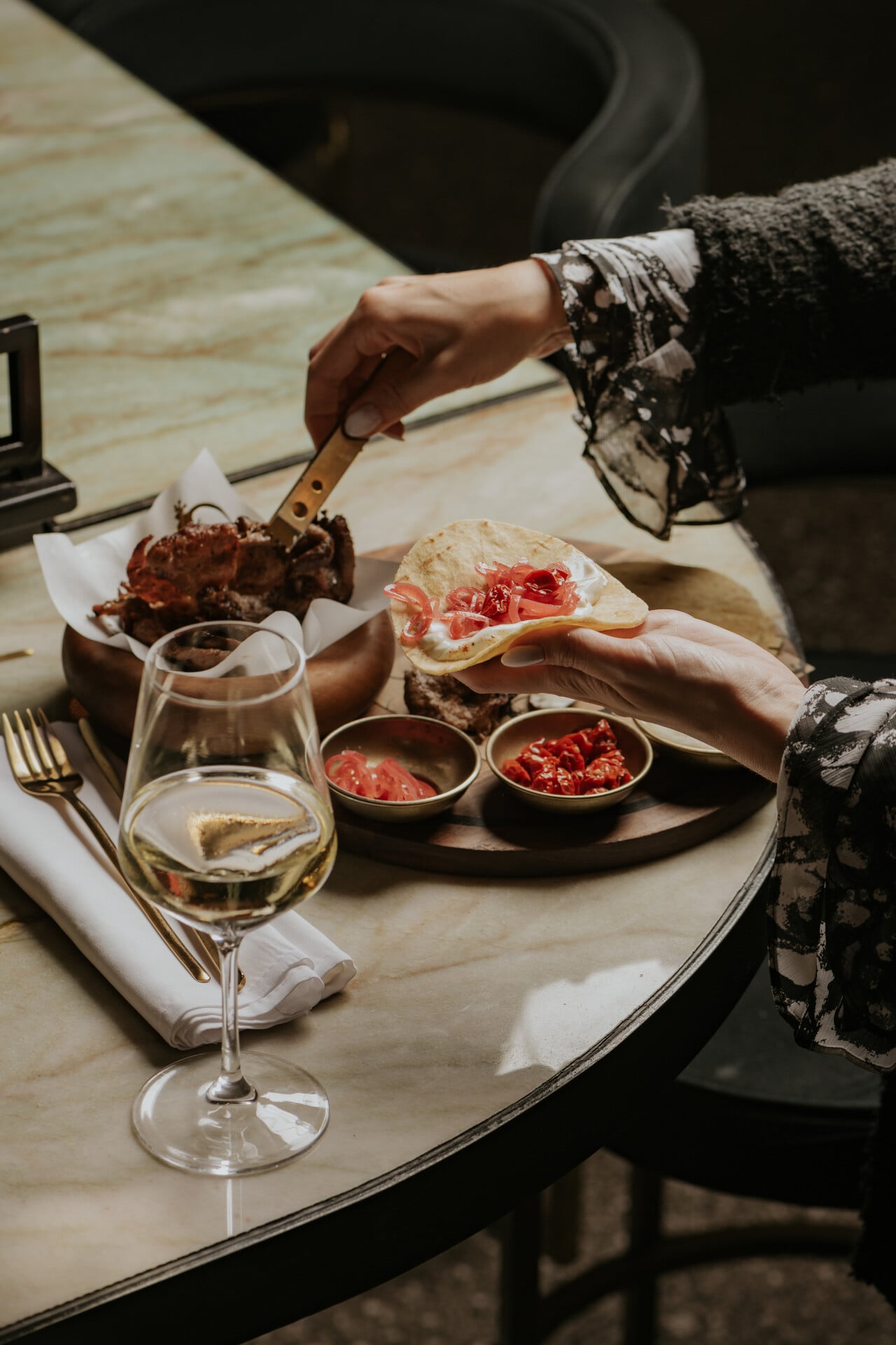 Η ομάδα της κουζίνας, με τον Executive Chef Παναγιώτη Φλάκα και τον Head Chef Χρήστο Ρήγα, υπογράφει ένα à la carte μενού που αναδεικνύει τις εποχικές πρώτες ύλες με έμπνευση από τη Μεσόγειο και τον κόσμο.