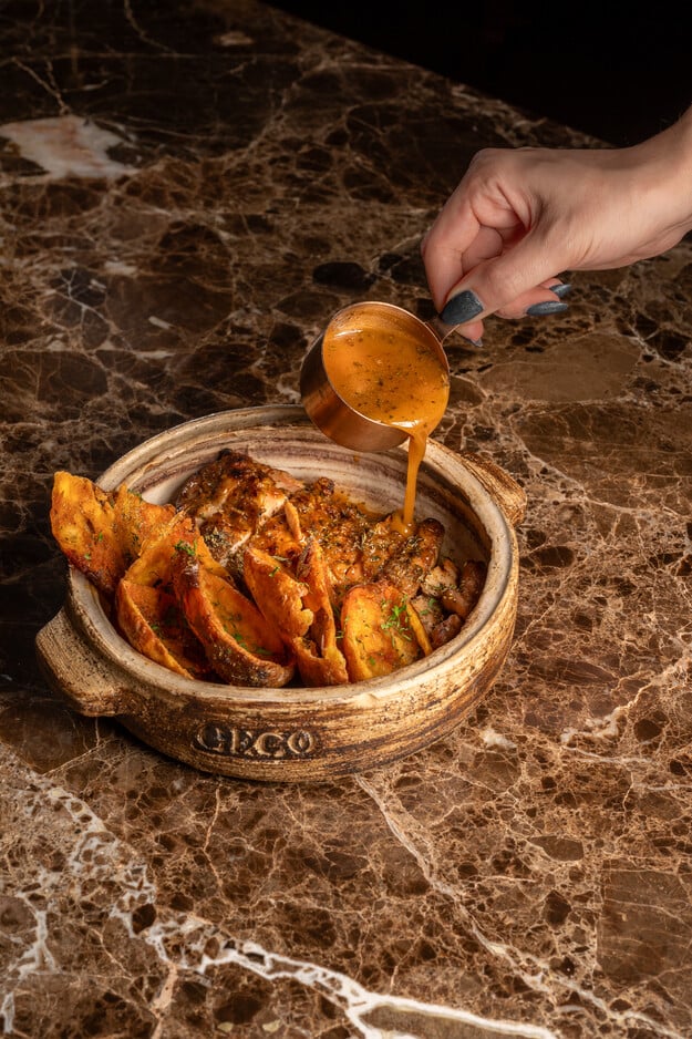 Στον παλμό του κέντρου της πόλης, παρέες Αθηναίων και επισκεπτών βρίσκουν το αγαπημένο τους σημείο στο Geco. Η επιβλητική 25μετρη λευκή μαρμάρινη μπάρα, η ανοιχτή κουζίνα και οι μεγάλες τζαμαρίες που προσφέρουν οπτική επαφή με τον δρόμο και φυσικό φως, δημιουργούν ένα περιβάλλον πολυδιάστατο, γεμάτο ενέργεια.