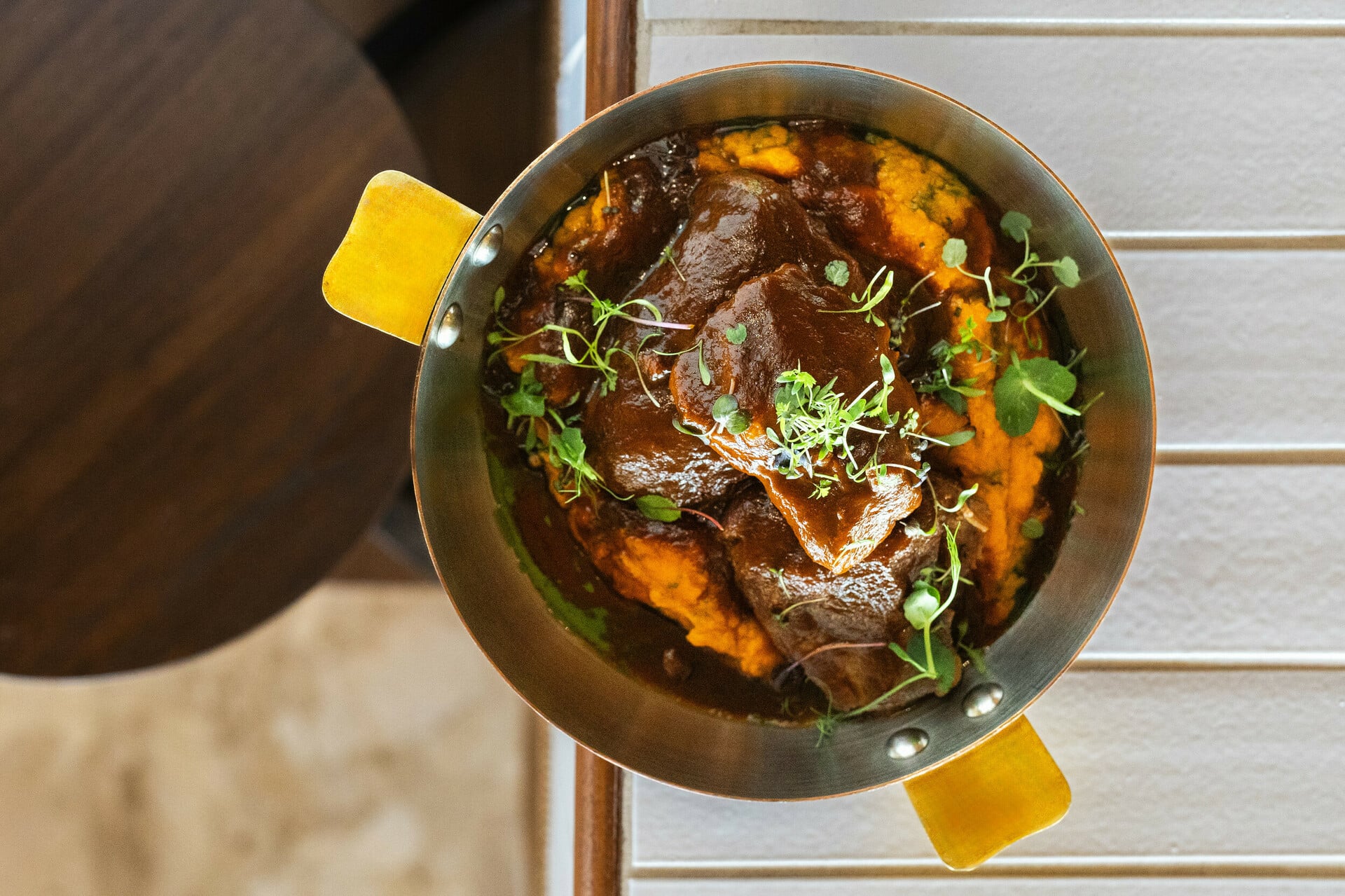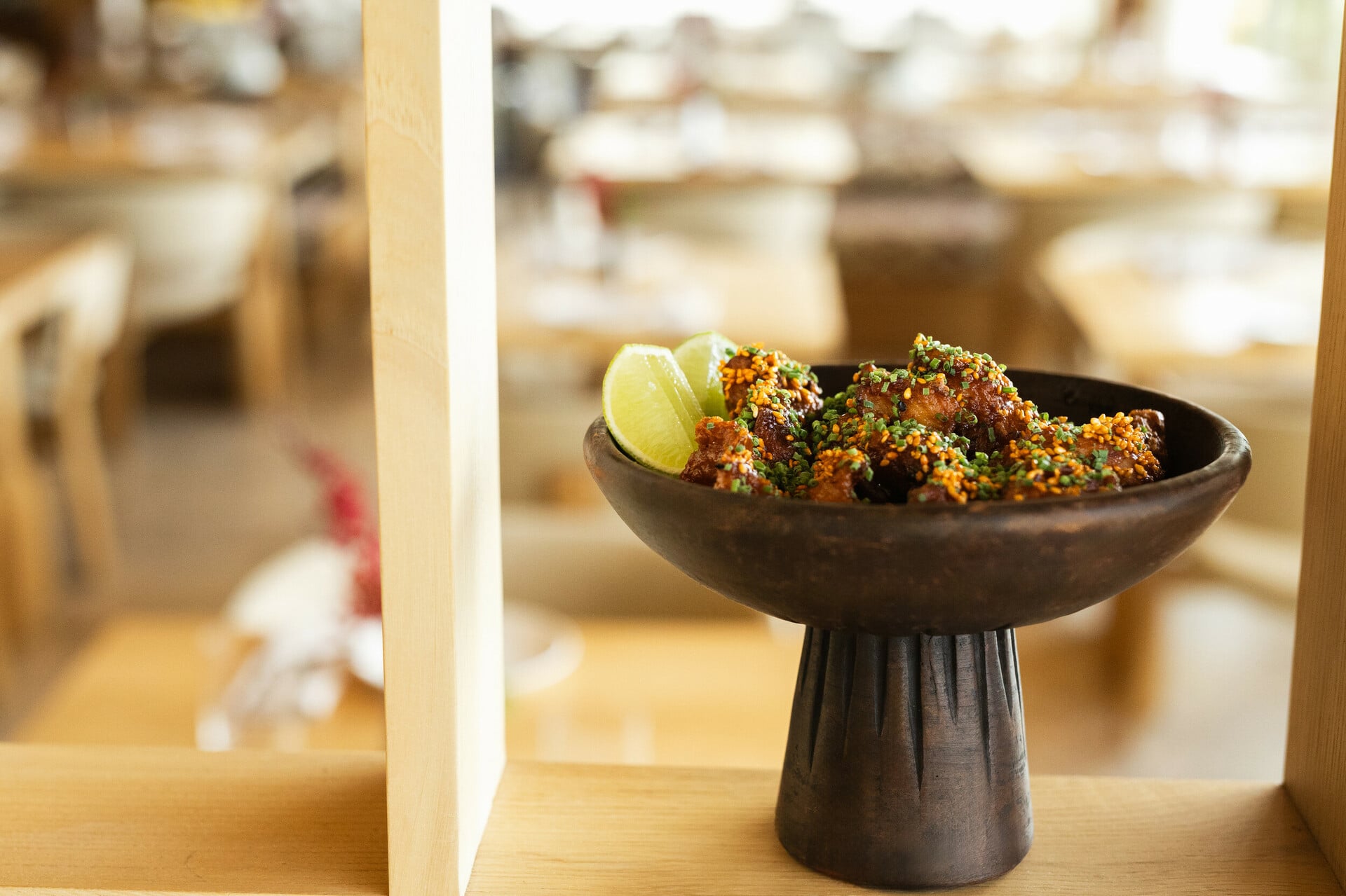 Tο μενού υπογράφει ο γνωστός σεφ Ντίνος Φωτεινάκης. Ανάλογα με την ώρα της ημέρας, οι καλεσμένοι θα βρουν στο μενού επιλογές μεσογειακών γεύσεων όπως φρέσκο ψάρι και θαλασσινά, premium κοπές και υπέροχα συνοδευτικά αλλά και προτάσεις sushi - όλα συνδυασμένα με εξαιρετικές ετικέτες κρασιού από τον ελληνικό και διεθνή αμπελώνα.
