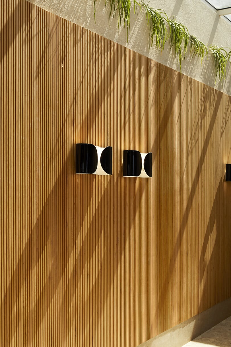 Η δομή του χώρου ακολουθεί τις γεωμετρικές αρχές του Μοντερνισμού ενώ τα έπιπλα, σε καθαρές και κομψές γραμμές, έχουν σχεδιαστεί αποκλειστικά για το Bungalow 7. Επένδυση ξύλου, γήινα χρώματα αλλά και κάποιες πιο έντονες αποχρώσεις για να τονίζουν τα σημεία, υφάσματα με ωραία μοτίβα, ιδιαίτερα διακοσμητικά αντικείμενα και πίνακες, φυσικά στοιχεία όλα μαζί συνθέτουν αυτόν τον ιδιαίτερο χώρο.