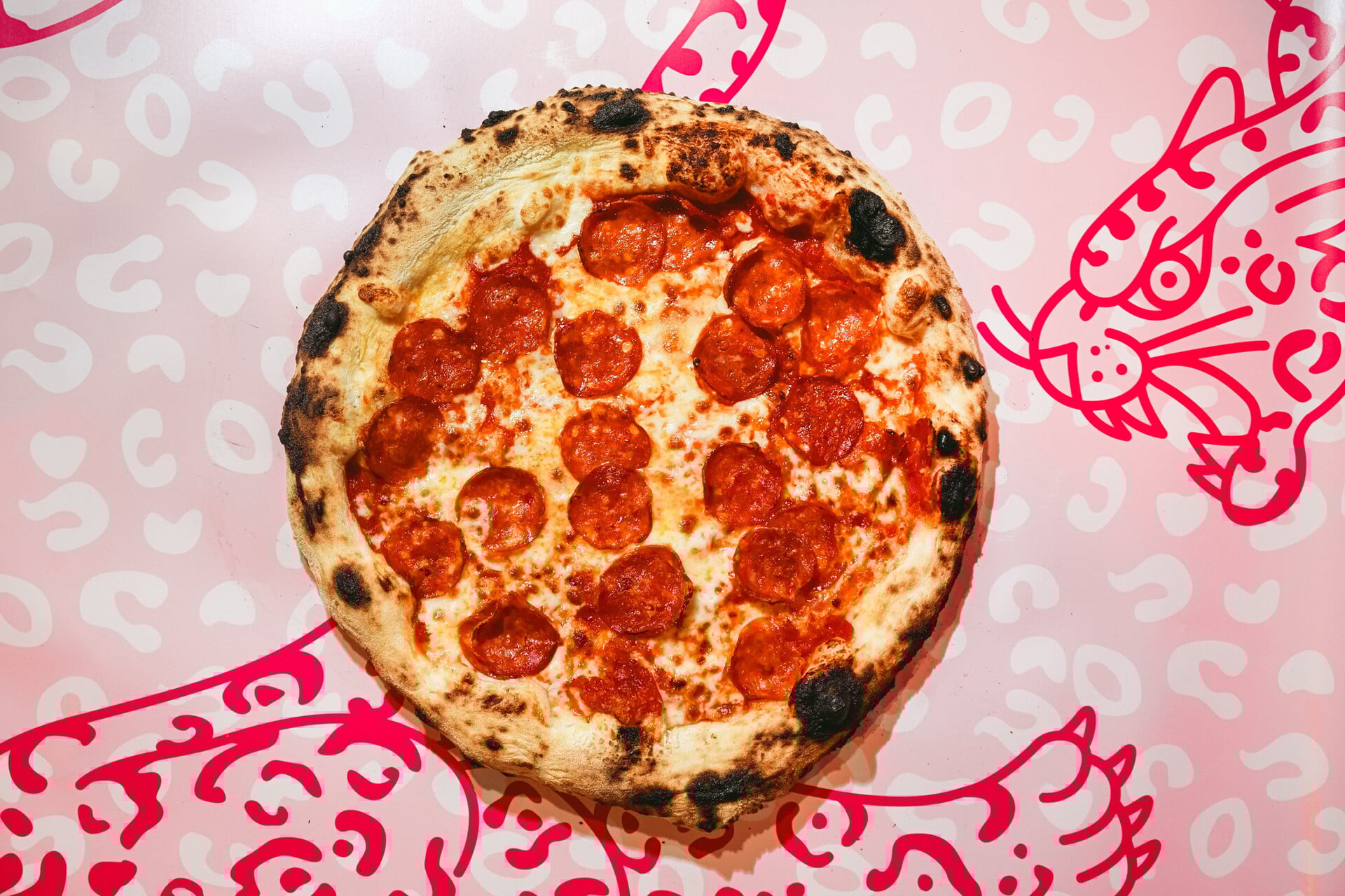 Η ζύμη, όπως σε κάθε pizza, παίζει κι εδώ τον πρωταγωνιστικό ρόλο, όχι μόνο επειδή φτιάχνεται με ιταλικό προζύμι Biga και ωριμάζει 48 ώρες για να είναι όσο ελαφριά πρέπει, αλλά και για το κυψελωτό cornicione με τις καφέ κηλίδες, που έδωσε άλλωστε και την έμπνευση για το όνομα Leo (δηλαδή λεοπάρδαλη), ενώ το packaging είναι ένα tribute στα 90's, κάνοντας το concept να αρέσει ακόμα περισσότερο.